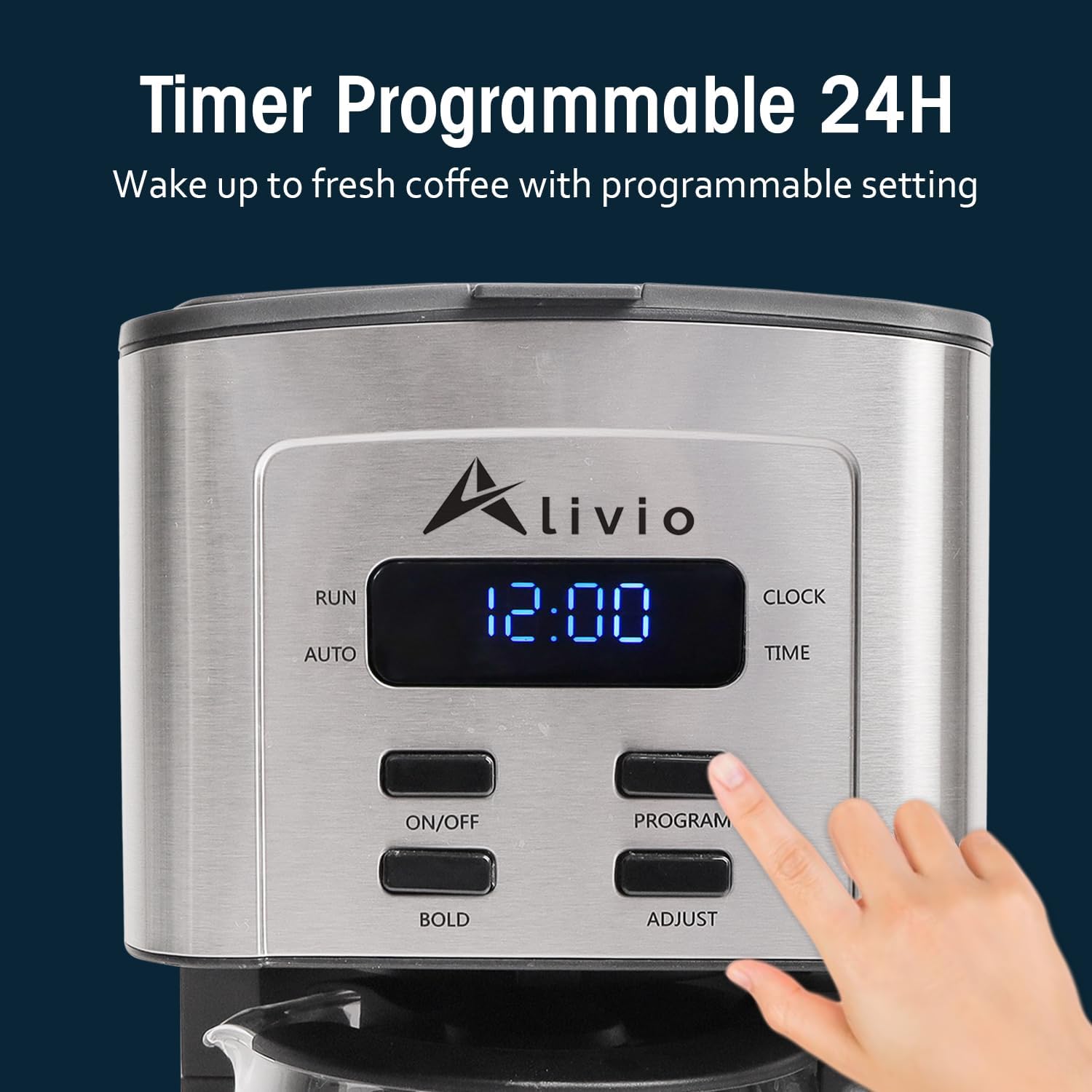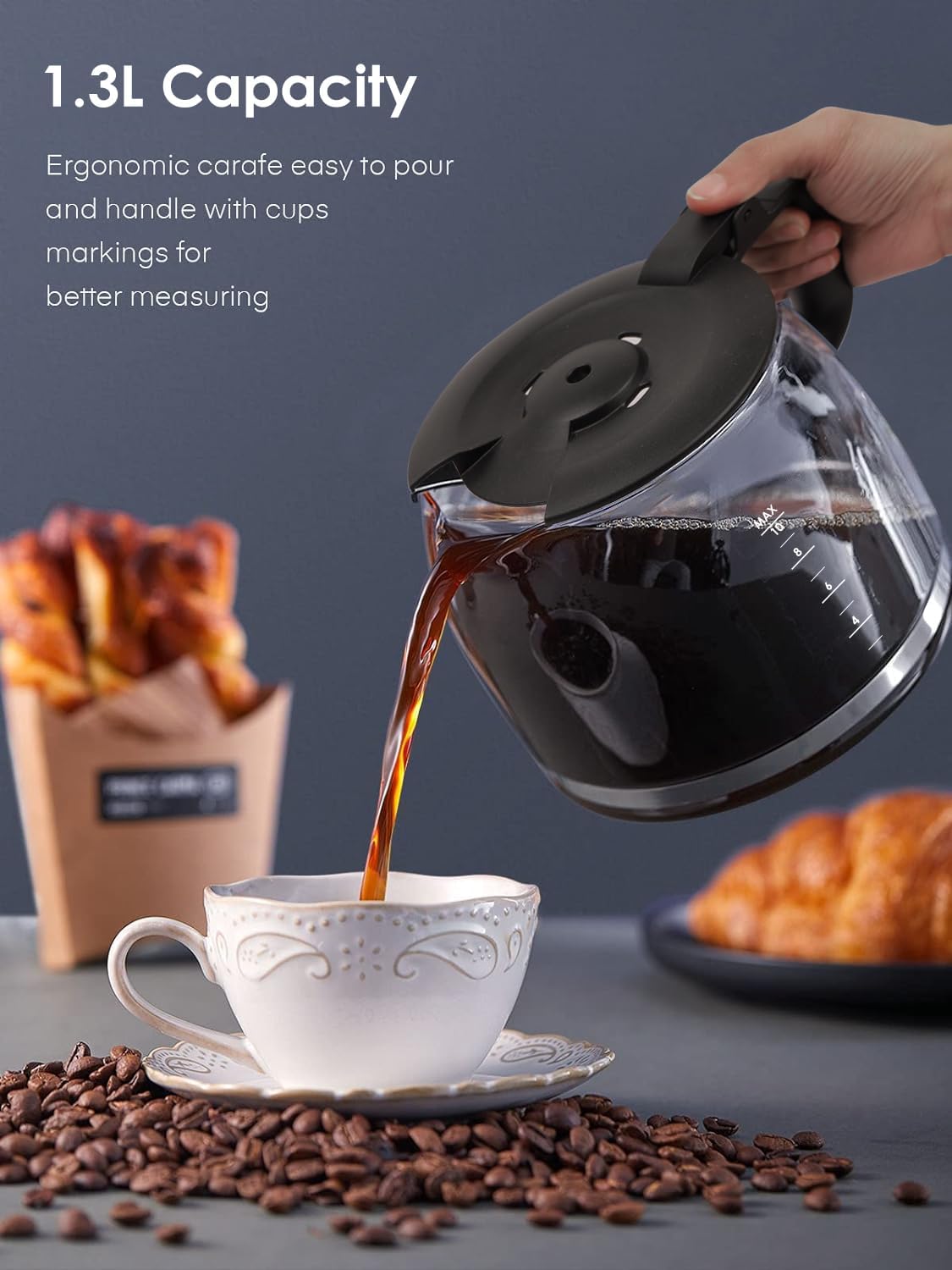 Elevate your morning routine with the 1.3L Coffee Maker featuring a 24-hour programmable timer, ensuring that a cup of hot, fresh coffee is always within reach. With an illuminated programmable LCD timer, this coffee maker offers convenient and easy operation. Enjoy the flexibility of setting your brewing time in advance with the 24-hour programmable feature, allowing you to wake up to the aroma of freshly brewed coffee. The wealth of features includes a 30-second anti-drip function, ensuring a clean pour every time. The 4-hour delay timer adds further convenience for your schedule. Safety is a priority with features such as boil-dry protection and a 40-minute auto-shutoff, providing peace of mind during your busy mornings. The removable and washable filter makes maintenance a breeze, ensuring your coffee maker stays in top condition.
