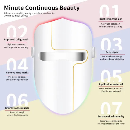 The Alivio Beauty Mask with Built-In Protective Eye Mask is a revolutionary skincare device designed to address multiple skin concerns using advanced 7-color LED light therapy and nano refraction technology for deep, effective skincare. Featuring three targeted modes, each light color delivers specific benefits: Red light rejuvenates and beautifies delicate skin, Orange light helps lighten the skin tone and reduce wrinkles, and Blue light controls excess oil and combats acne. The nano refraction lines ensure full facial coverage, penetrating deeply to stimulate collagen, enhance skin elasticity, and accelerate cellular energy for visible results. The mask promotes skin brightening, deep repair, wrinkle reduction, and acne mark removal while also improving rough texture, minimizing pores, and balancing oil and moisture levels. Additionally, it strengthens skin immunity by breaking down pigmentation and soothing redness. Designed with a built-in protective eye mask, it safely shields the eyes from light exposure, eliminating the need for separate eye protection. Easy to use, the Alivio Beauty Mask is rechargeable and can be plugged in, making it a convenient and effective solution for at-home skincare.