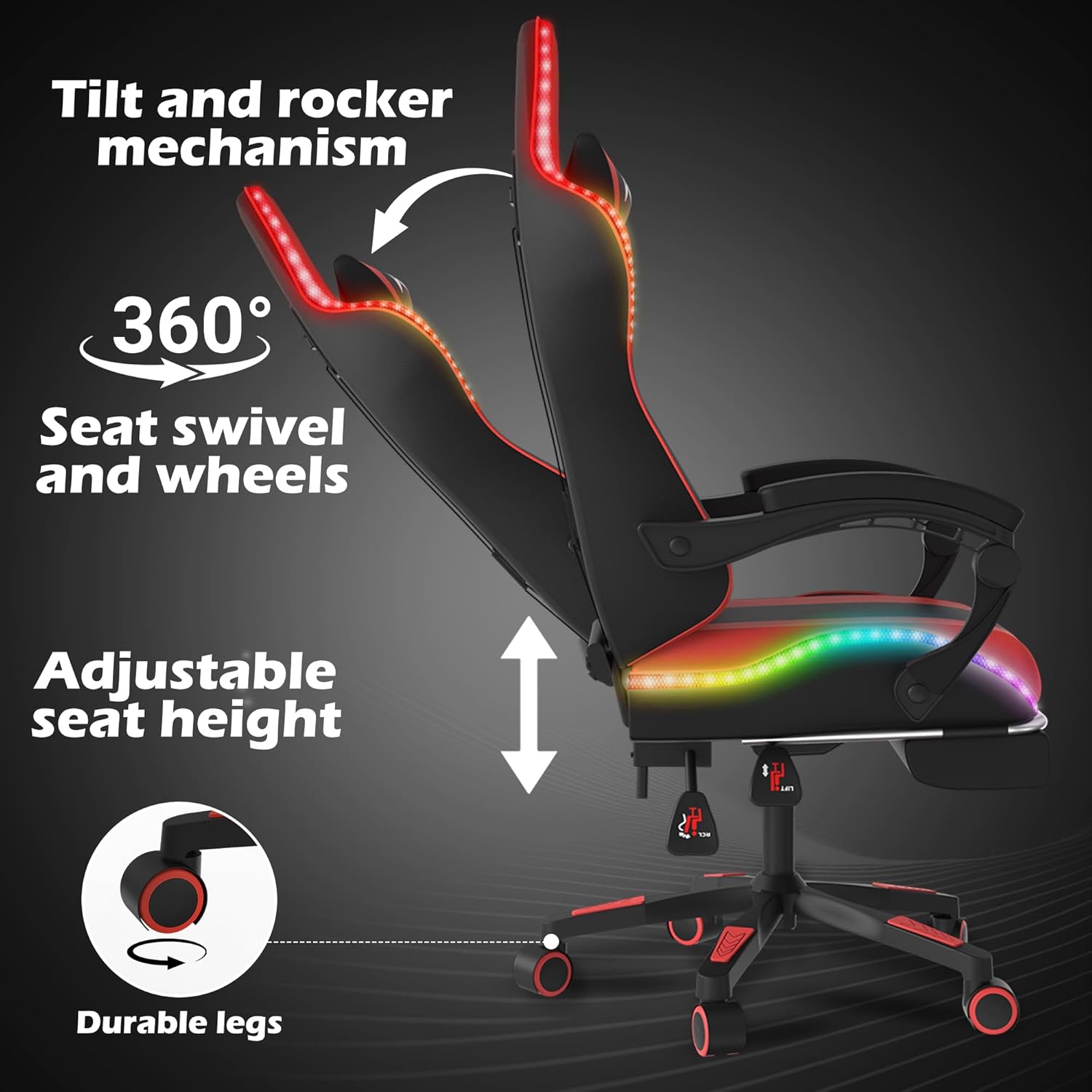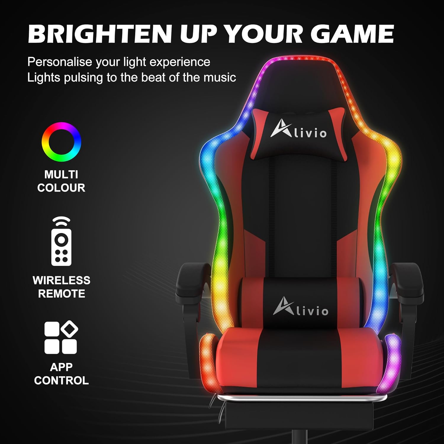 The Alivio Wireless Remote Control Ergonomic Gaming Chair is designed for ultimate comfort and performance, featuring a sturdy build with a 200kg weight capacity, premium PU leather, and high-density cushioning for long-lasting support. Its 360° swivel, full recline, tilt, and rocker mechanisms let you find your perfect position, while the adjustable armrests, seat height, and backrest provide personalized ergonomics. A massage lumbar cushion helps reduce tension, and the retractable footrest adds relaxation when you need it most. Equipped with durable legs, noiseless rolling wheels, and a wide supportive backrest, this chair is perfect for gamers and professionals seeking comfort, functionality, and style in one premium seating solution.