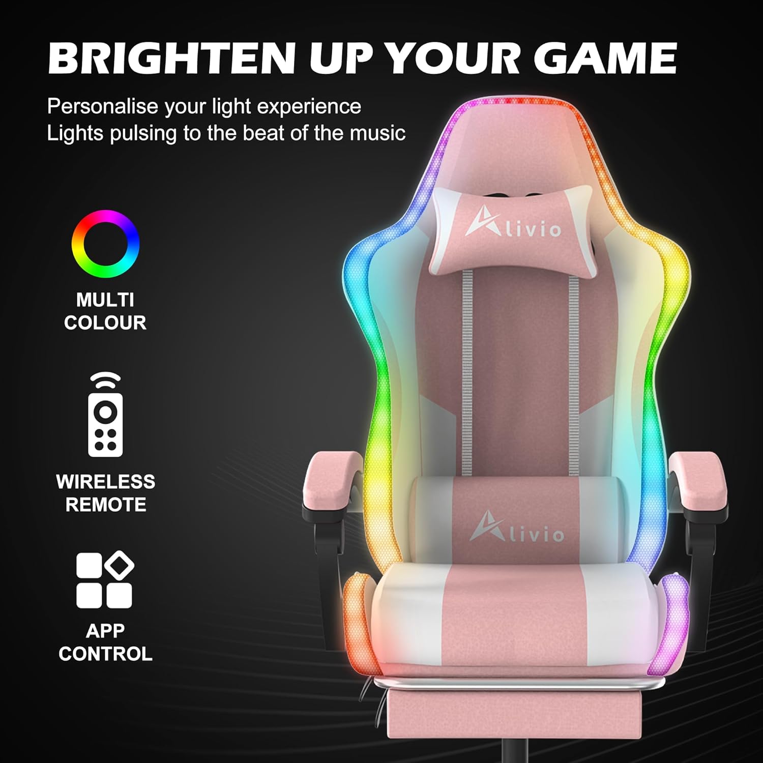 The Alivio Wireless Remote Control Ergonomic Gaming Chair is designed for ultimate comfort and performance, featuring a sturdy build with a 200kg weight capacity, premium PU leather, and high-density cushioning for long-lasting support. Its 360° swivel, full recline, tilt, and rocker mechanisms let you find your perfect position, while the adjustable armrests, seat height, and backrest provide personalized ergonomics. A massage lumbar cushion helps reduce tension, and the retractable footrest adds relaxation when you need it most. Equipped with durable legs, noiseless rolling wheels, and a wide supportive backrest, this chair is perfect for gamers and professionals seeking comfort, functionality, and style in one premium seating solution.