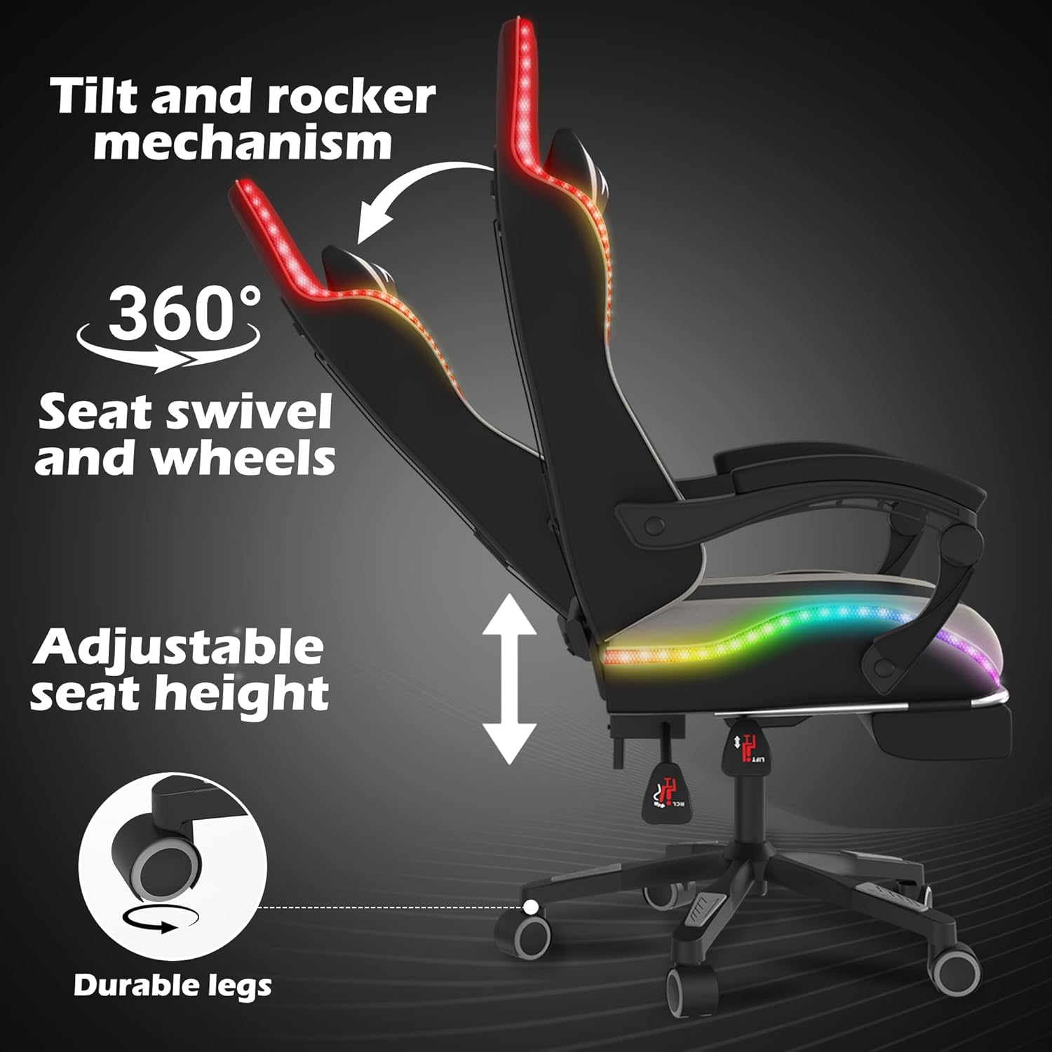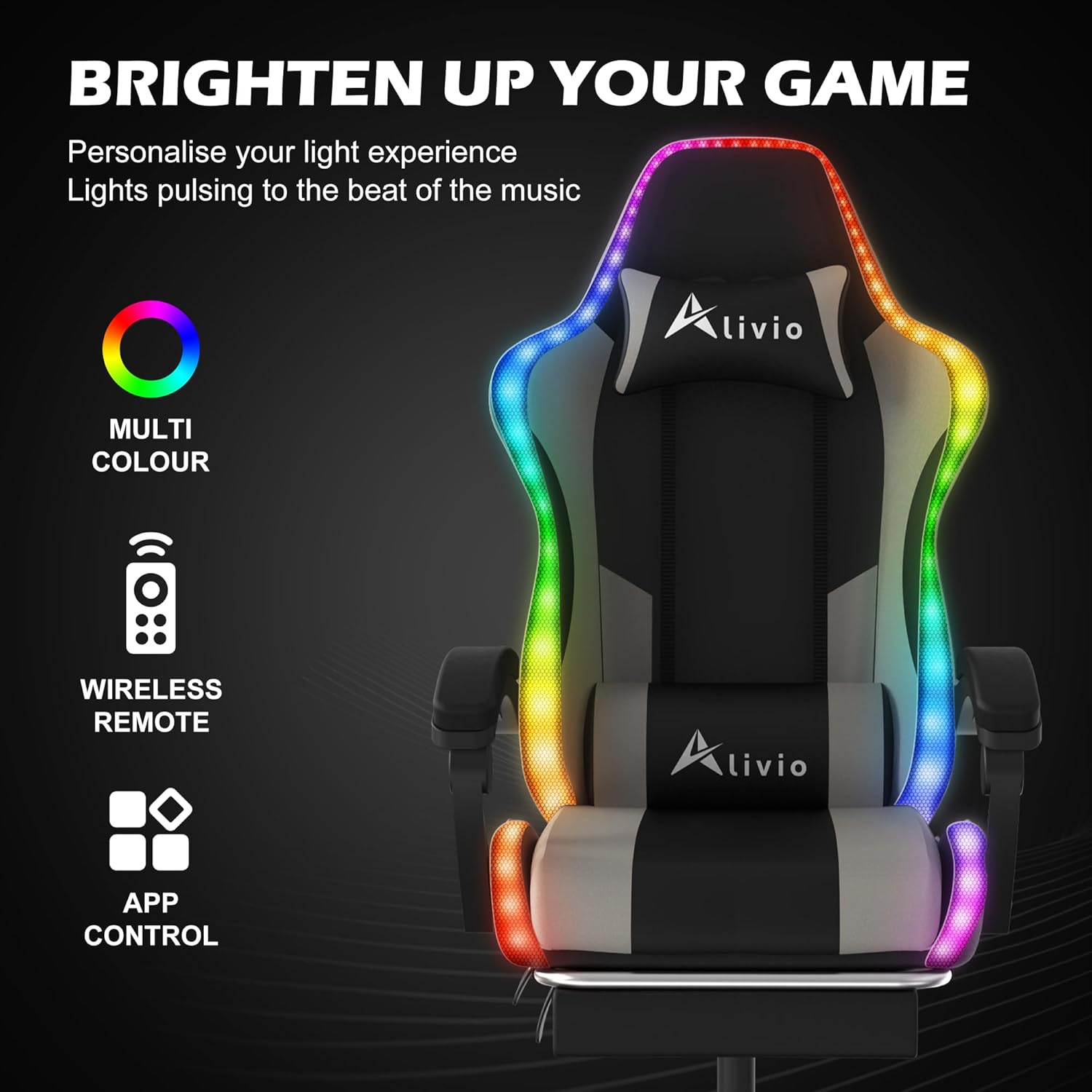 The Alivio Wireless Remote Control Ergonomic Gaming Chair is designed for ultimate comfort and performance, featuring a sturdy build with a 200kg weight capacity, premium PU leather, and high-density cushioning for long-lasting support. Its 360° swivel, full recline, tilt, and rocker mechanisms let you find your perfect position, while the adjustable armrests, seat height, and backrest provide personalized ergonomics. A massage lumbar cushion helps reduce tension, and the retractable footrest adds relaxation when you need it most. Equipped with durable legs, noiseless rolling wheels, and a wide supportive backrest, this chair is perfect for gamers and professionals seeking comfort, functionality, and style in one premium seating solution.