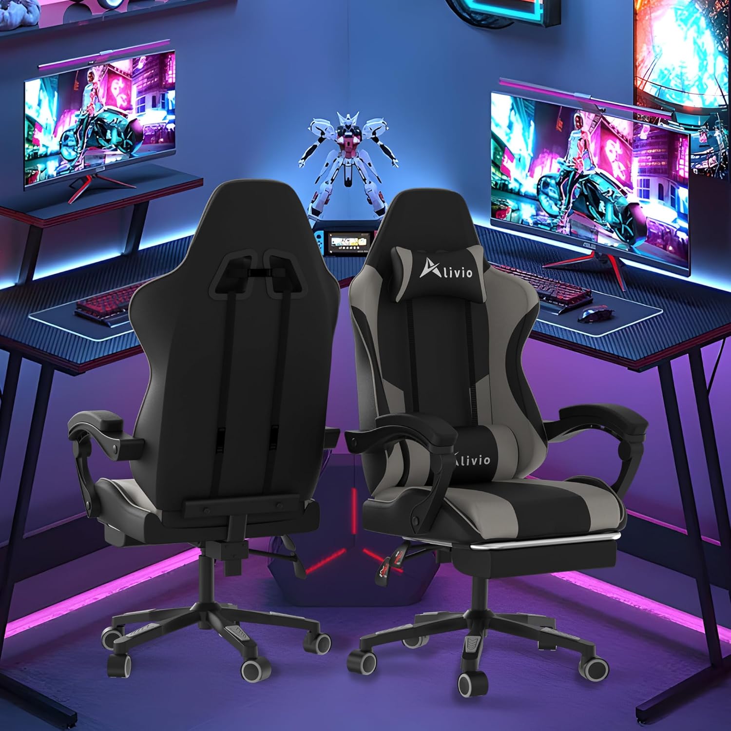 <!-- x-tinymce/html -->The Alivio Ergonomic Gaming Chair is designed for ultimate comfort and performance, featuring a sturdy build with a 200kg weight capacity, premium PU leather, and high-density cushioning for long-lasting support. Its 360° swivel, full recline, tilt, and rocker mechanisms let you find your perfect position, while the adjustable armrests, seat height, and backrest provide personalized ergonomics. A massage lumbar cushion helps reduce tension, and the retractable footrest adds relaxation when you need it most. Equipped with durable legs, noiseless rolling wheels, and a wide supportive backrest, this chair is perfect for gamers and professionals seeking comfort, functionality, and style in one premium seating solution.