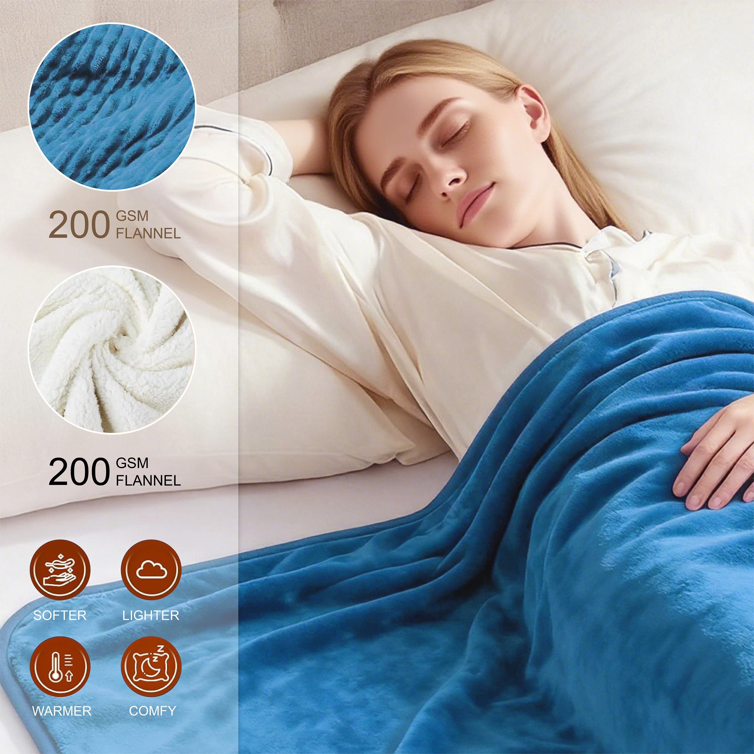 Experience ultimate comfort and warmth with the Premium Electric Heated Blanket, designed with 7 adjustable heat levels and 9 timer modes for personalized temperature control and safety. Crafted from ultra-soft 200 GSM flannel, this blanket feels lightweight yet luxuriously plush, providing cozy warmth without extra weight. Its fast-heating technology allows you to feel the temperature rise significantly within just 5 minutes, while the advanced heating system ensures a wider heating area and even heat distribution throughout. The blanket is energy-efficient, helping you save on heating costs while keeping you warm and relaxed during cold weather. It’s also machine washable for easy care—simply remove the controller before cleaning. For safety and durability, avoid dry cleaning, bleaching, or ironing. Perfect for beds, sofas, and cozy evenings, this electric blanket combines modern convenience with ultimate comfort for the perfect winter experience.