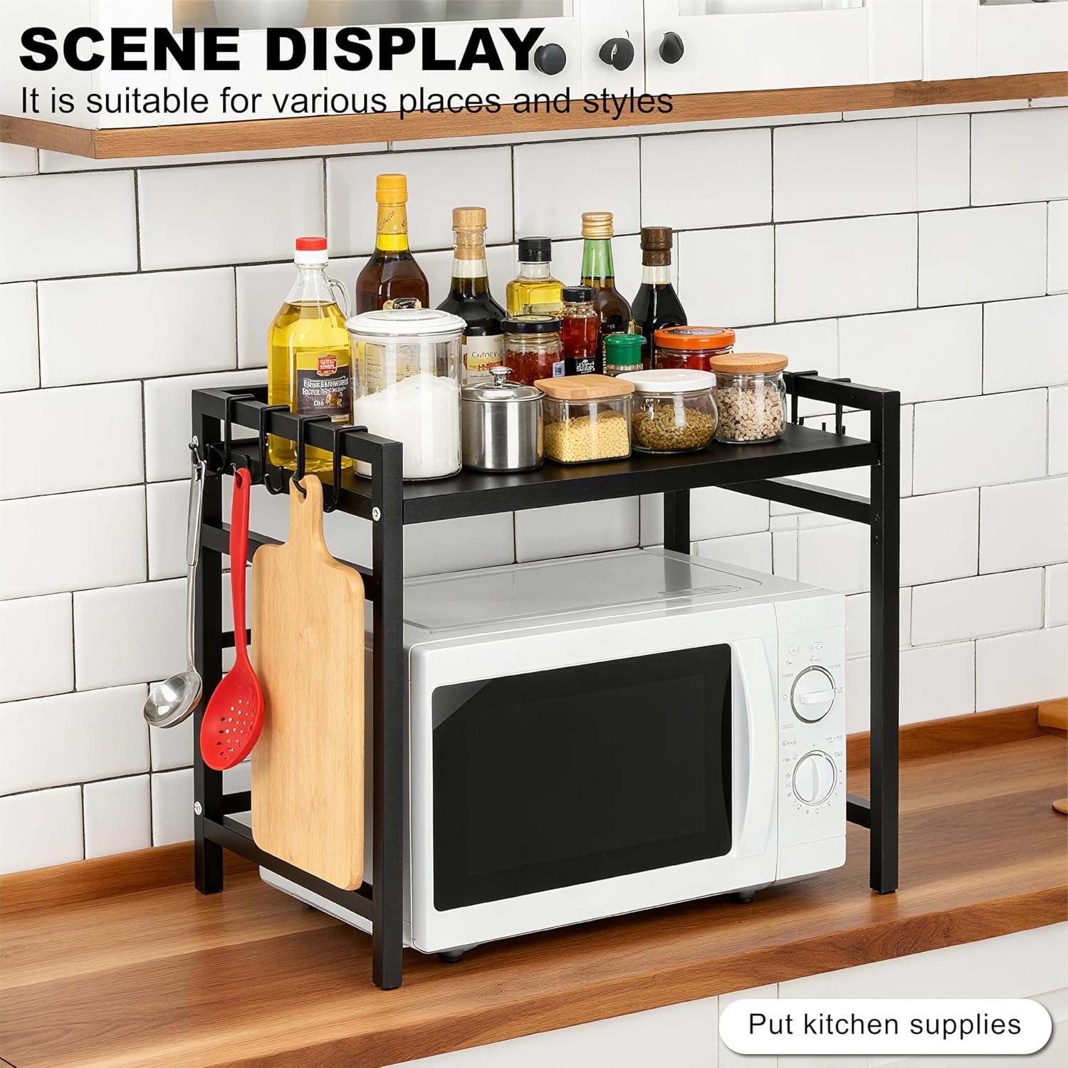 Keep your kitchen or workspace organized in style with the Alivio Multifunctional Storage Rack. Designed for versatility and strength, this adjustable metal rack easily expands to fit your space. Whether used as a microwave stand, spice rack, or desktop organizer, it offers stable support, elegant design, and high durability for all your storage needs.