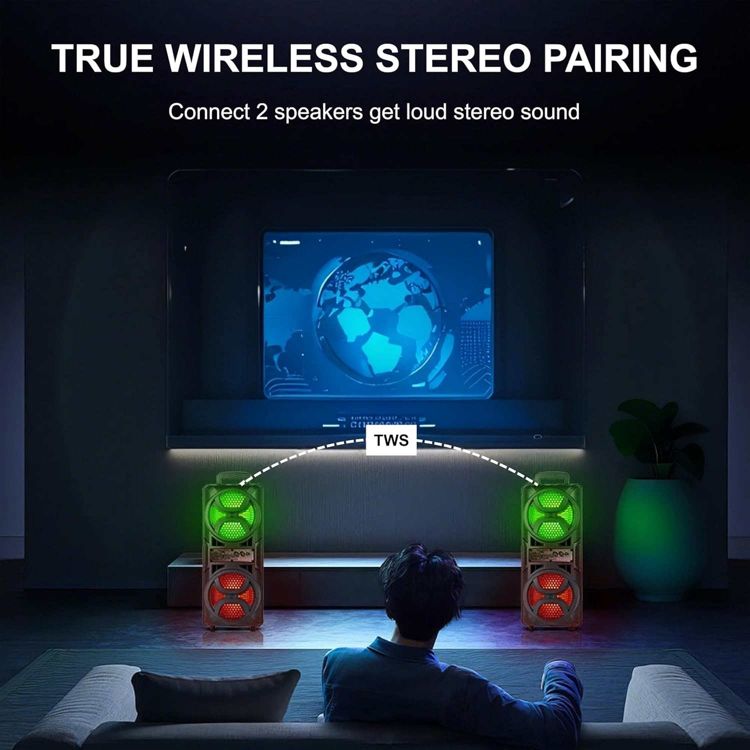 Bring the party wherever you go with this powerful portable karaoke speaker! Designed for music lovers and entertainers alike, this speaker combines deep bass, vibrant LED lights, and wireless freedom to make every gathering unforgettable. Whether you're hosting karaoke nights, outdoor parties, or family get-togethers, this speaker ensures a joyful and energetic atmosphere anywhere.