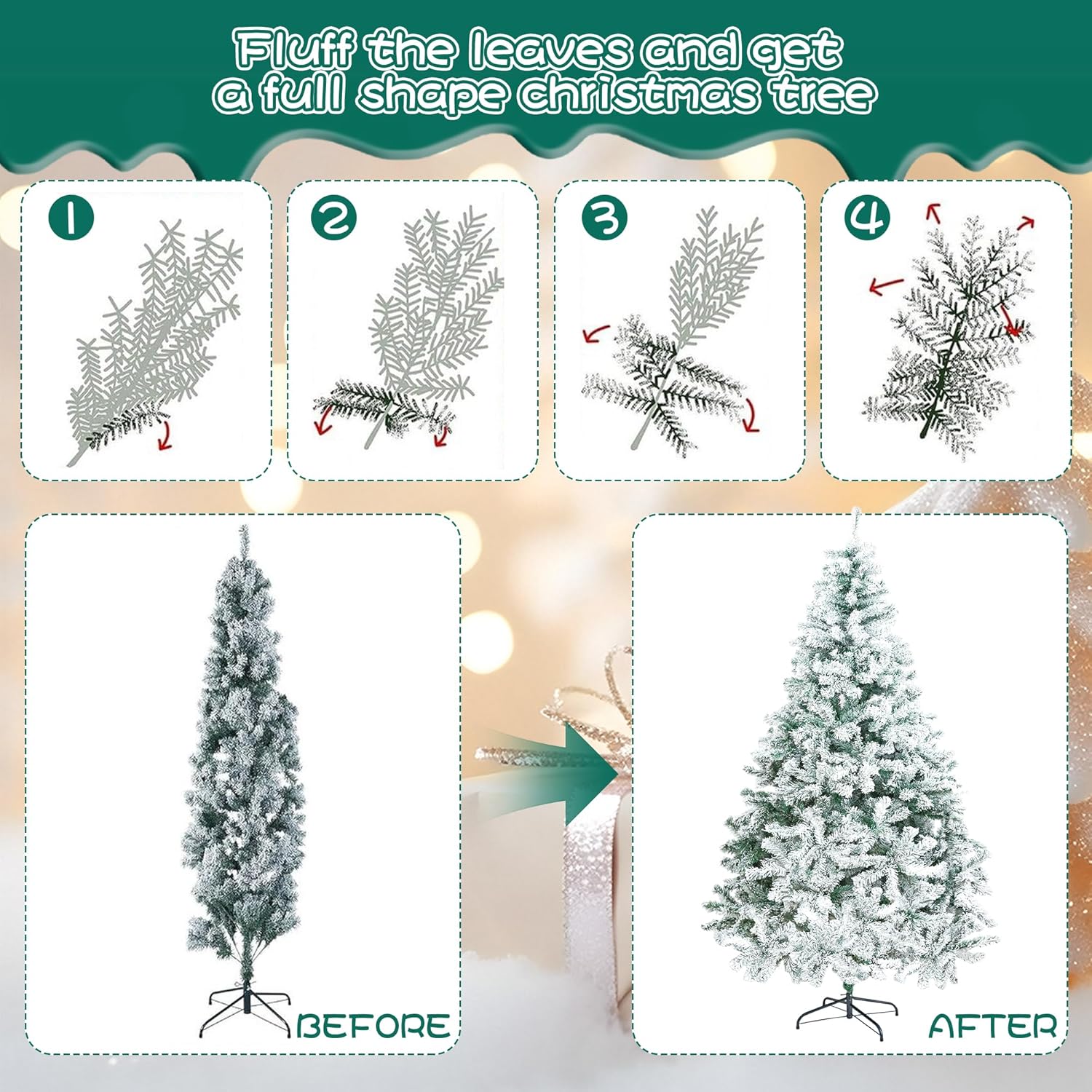 <!-- x-tinymce/html -->Bring the magic of winter indoors with the Alivio 6ft Snow Christmas Tree, featuring realistic snow-flocked leaves that create a charming, festive ambiance for your home, office, or shop. Crafted from high-quality PVC materials, this artificial tree is durable, flame-retardant, safe, and odor-free, ensuring long-term use and peace of mind. The sturdy X-shaped metal base with anti-slip protective foot pads and 3 reinforced screws provides excellent stability, while its foldable design allows for easy assembly and convenient storage. The snow-bent branches and lifelike flocked leaves bring a winter wonderland feel to any space, making it an eye-catching centerpiece for holiday celebrations. Designed for crack-resistant durability and everyday safety, the Alivio Snow Christmas Tree combines elegance, practicality, and festive charm in one beautifully crafted decoration.