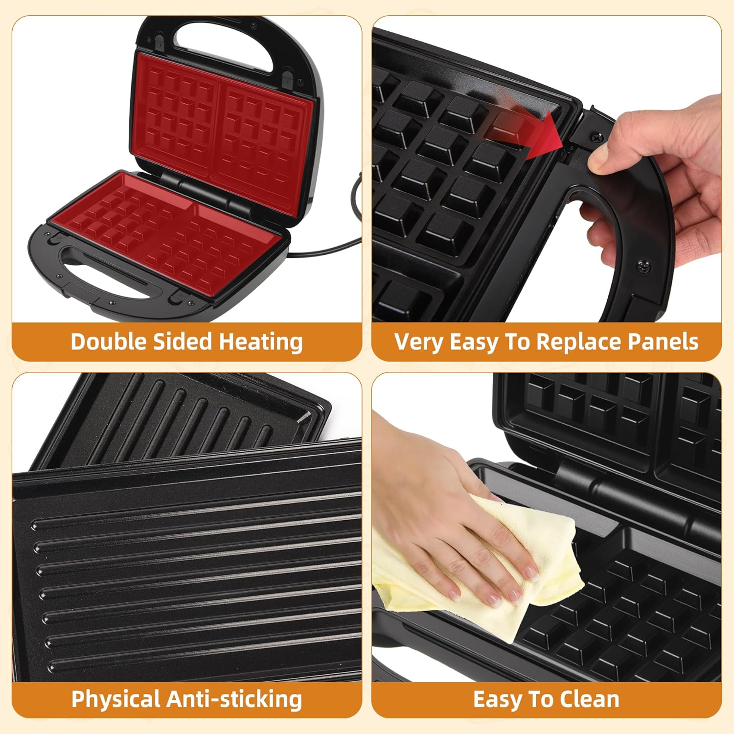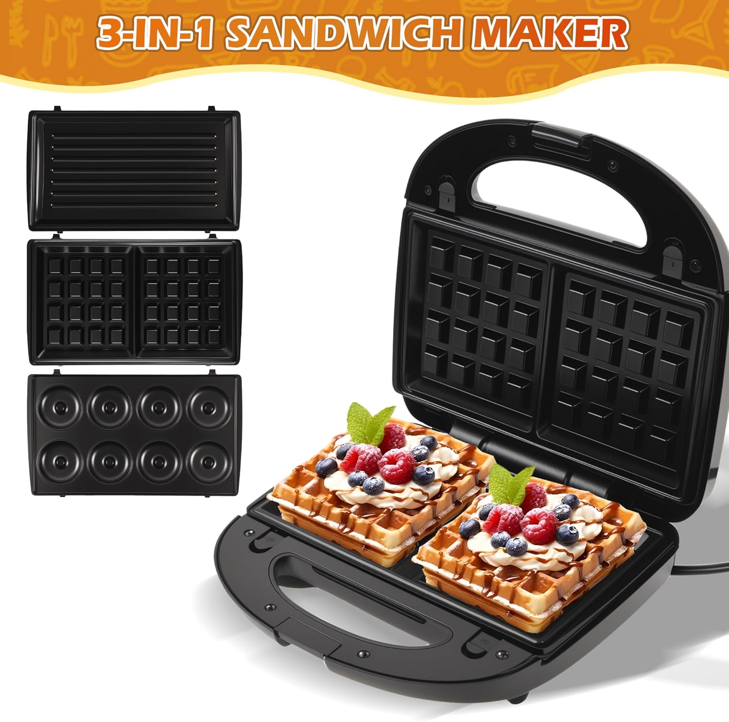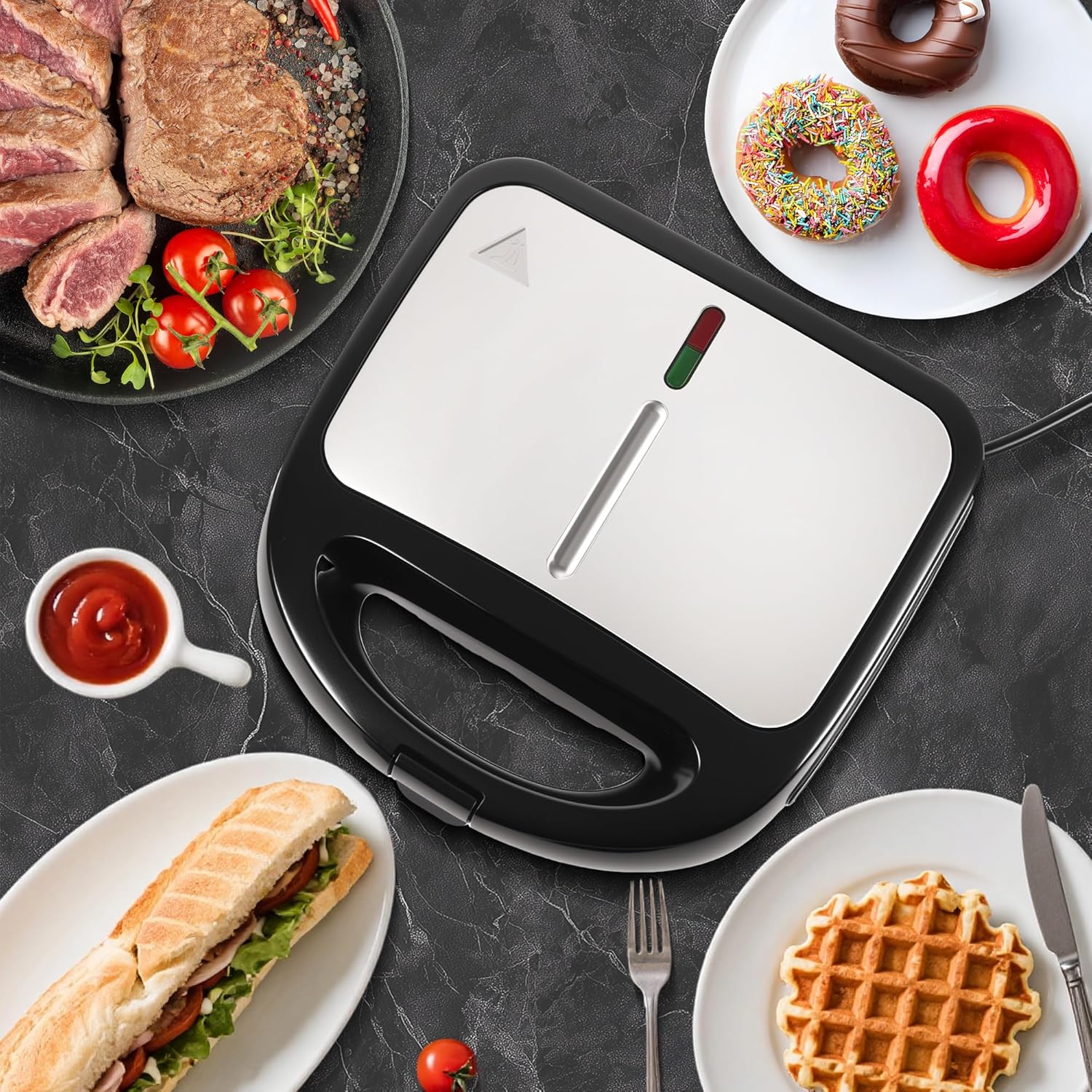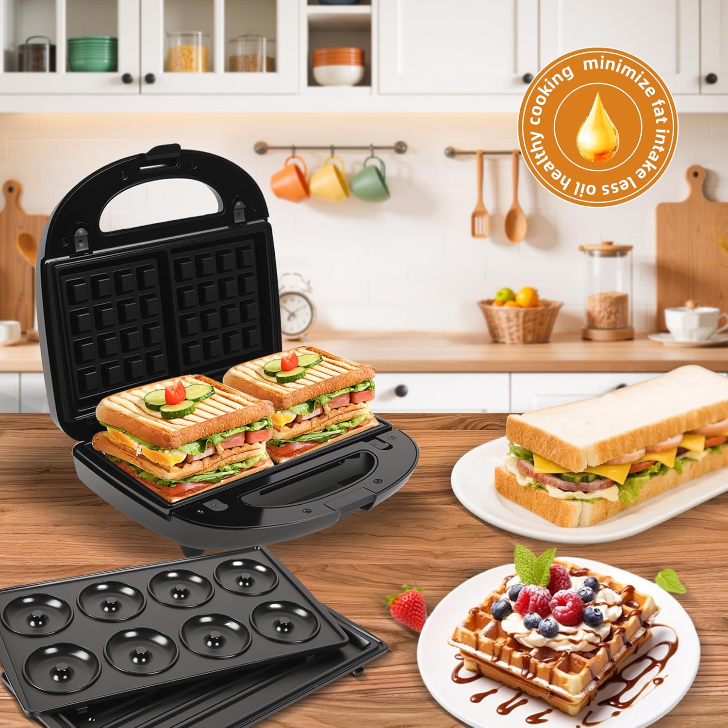 Create delicious donuts, paninis, and waffles effortlessly with the Alivio 3-in-1 Detachable Plate Maker — your all-in-one kitchen companion for quick snacks and breakfasts. Designed with convenience and performance in mind, this multi-functional appliance comes with three easy-to-swap non-stick plates that let you prepare a variety of meals in minutes.