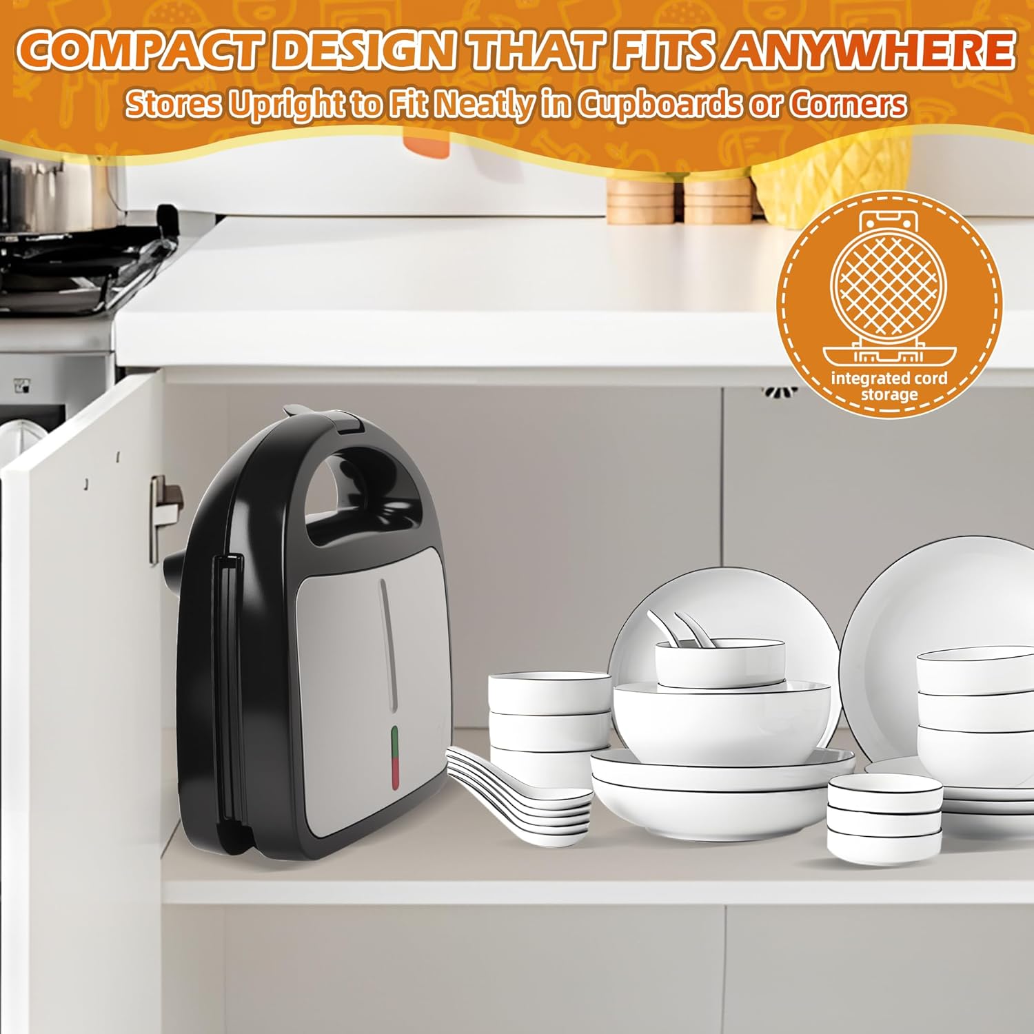 Compact and stylish, it stores upright to save counter space and fits neatly in cupboards or kitchen corners. Perfect for busy mornings, family treats, or anytime snacking!