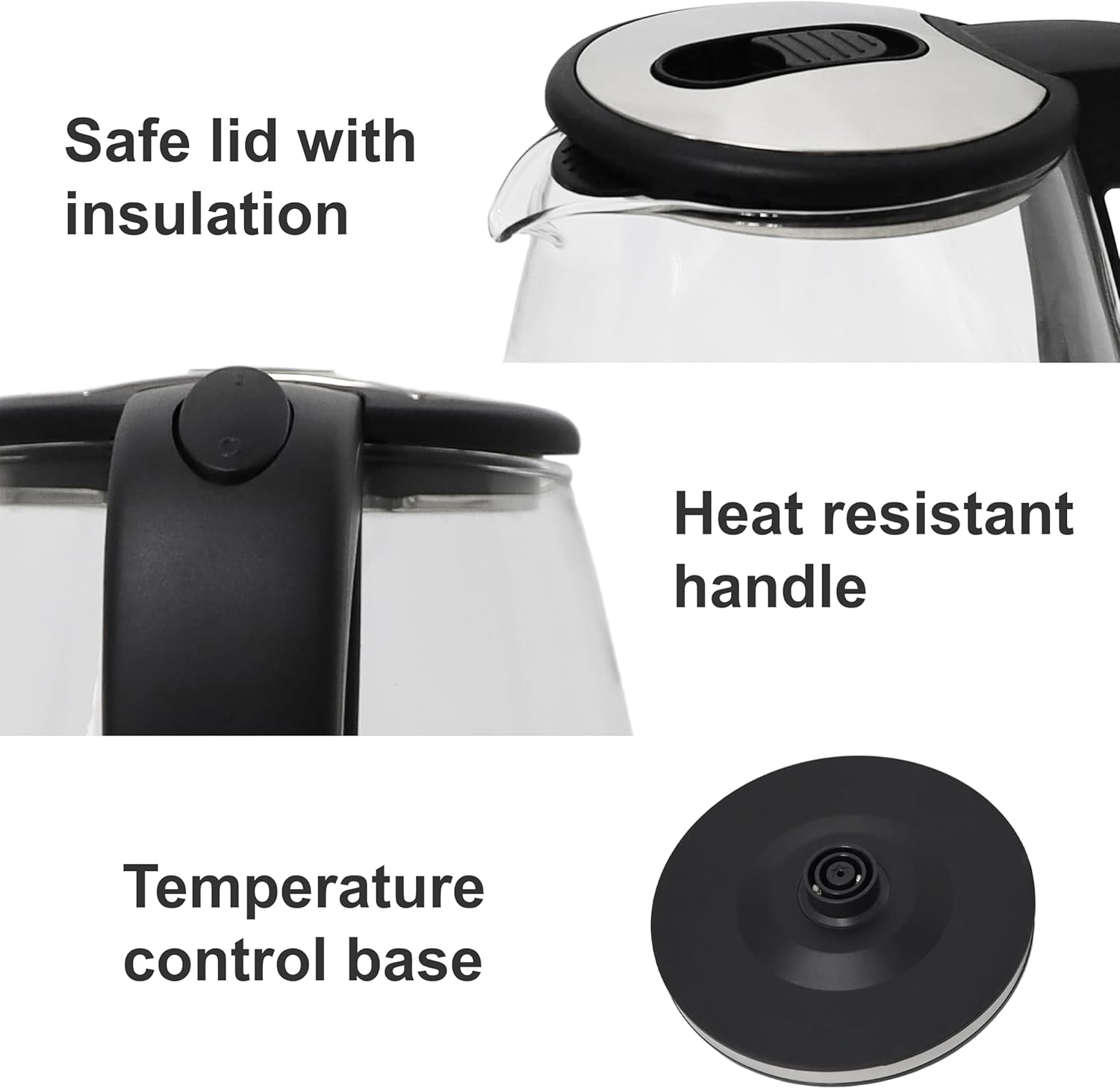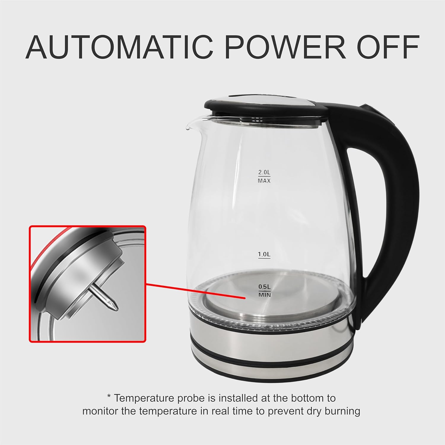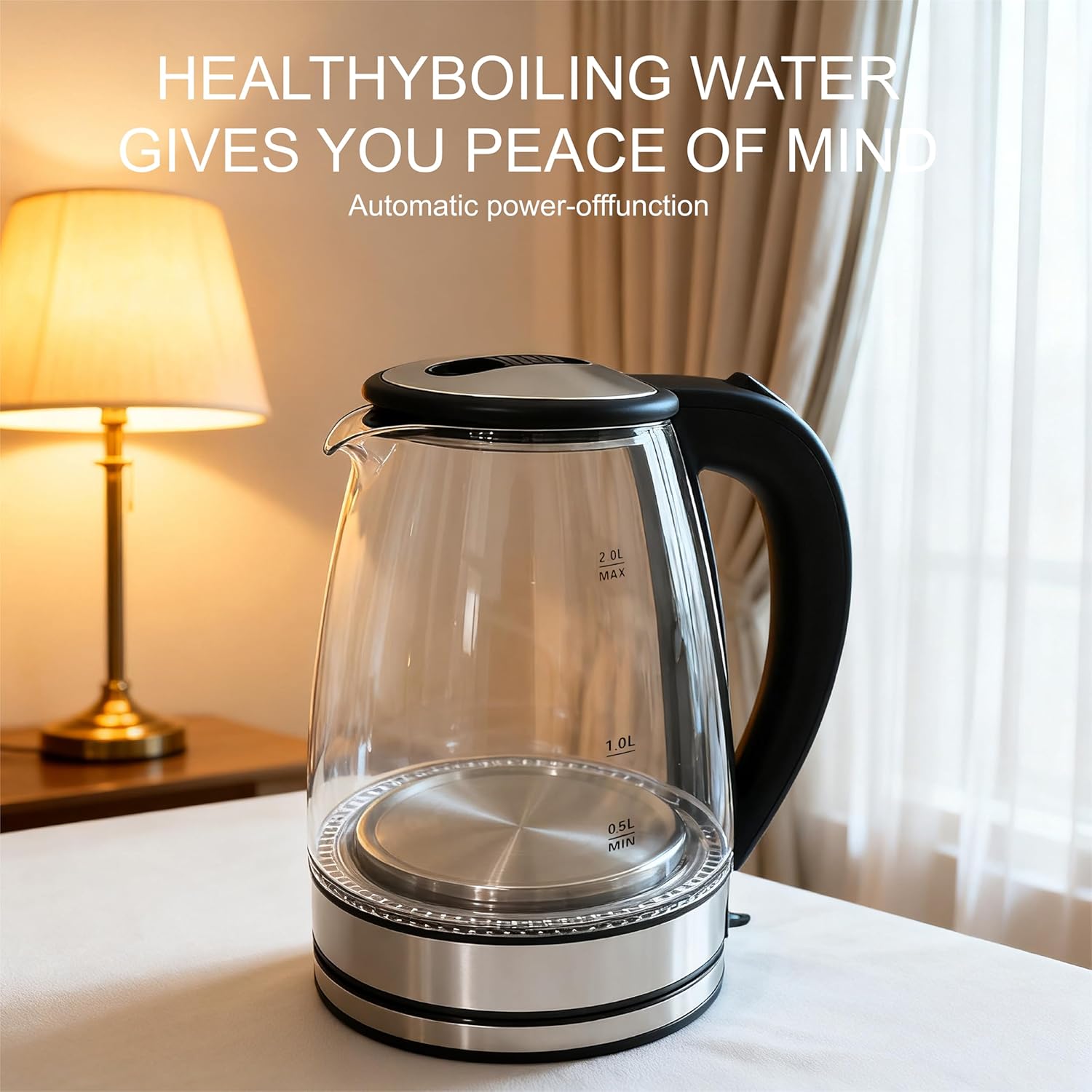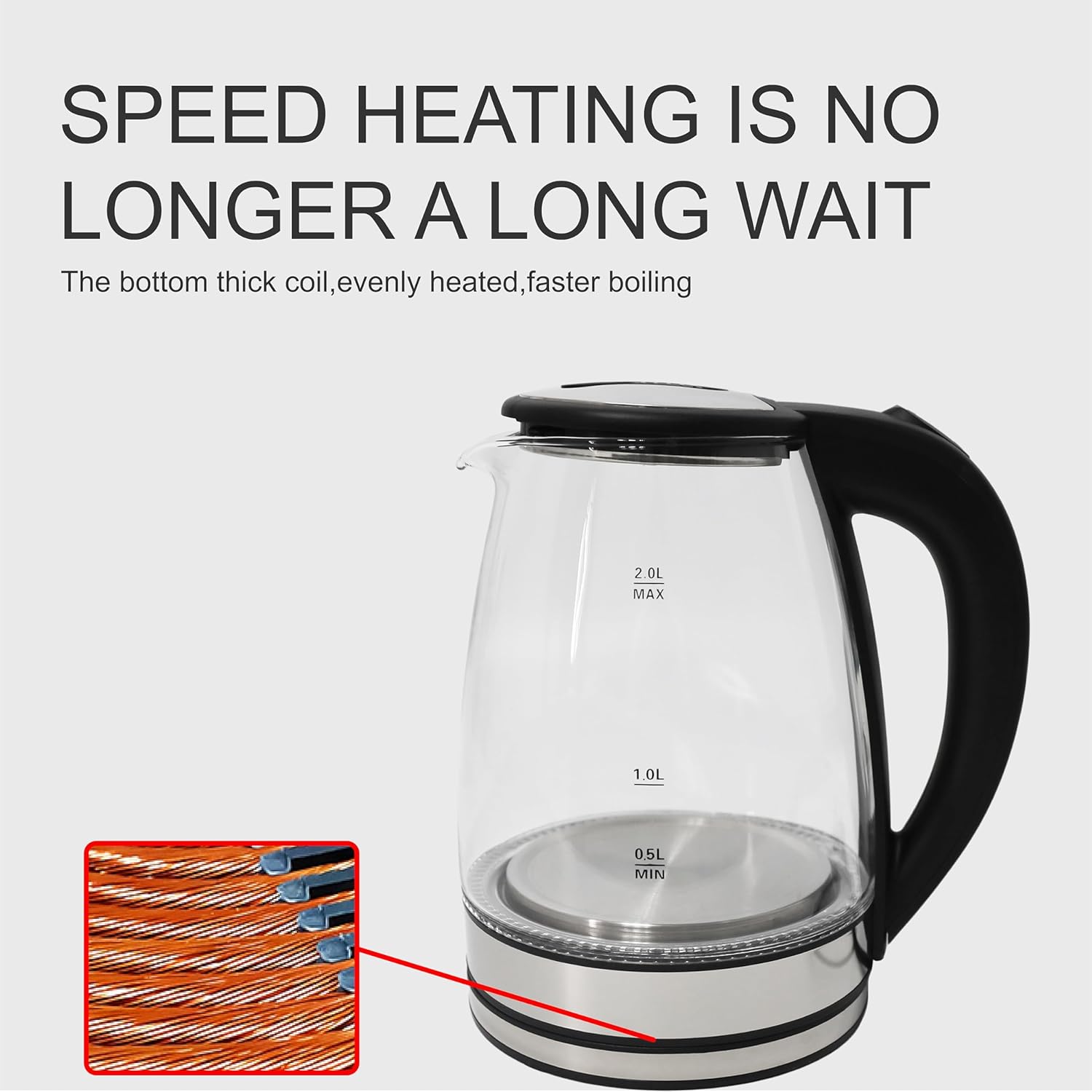Enjoy the perfect blend of elegance, safety, and performance with the Alivio 2L Electric Kettle. Built with premium, high-quality scratch-resistant glass, this kettle ensures a healthy boiling experience every time, giving you peace of mind with pure, safe water. Powered by a high-efficiency 1800W heating element, it brings water to a rolling boil in just a few minutes — no more long waiting times. The thick heating coil base distributes heat evenly for faster boiling while saving energy.
