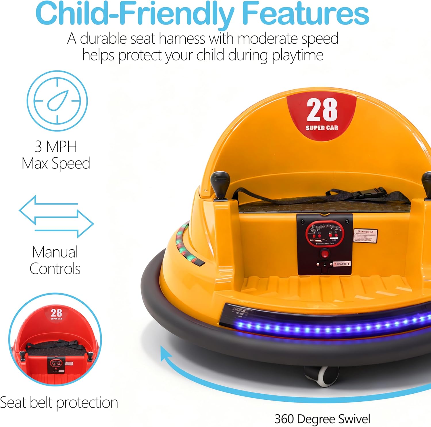 Crafted with a soft foam bumper and durable safety harness, this car keeps your child secure while bumping, spinning, and laughing their way through playtime. The child-friendly speed limit (3 MPH) ensures a safe yet thrilling ride, while the comfortable seat with belt protection keeps your little one steady during motion. Compact, stylish, and fun the Alivio bumper car is perfect for indoor and outdoor play, offering the ultimate ride-on experience for kids.