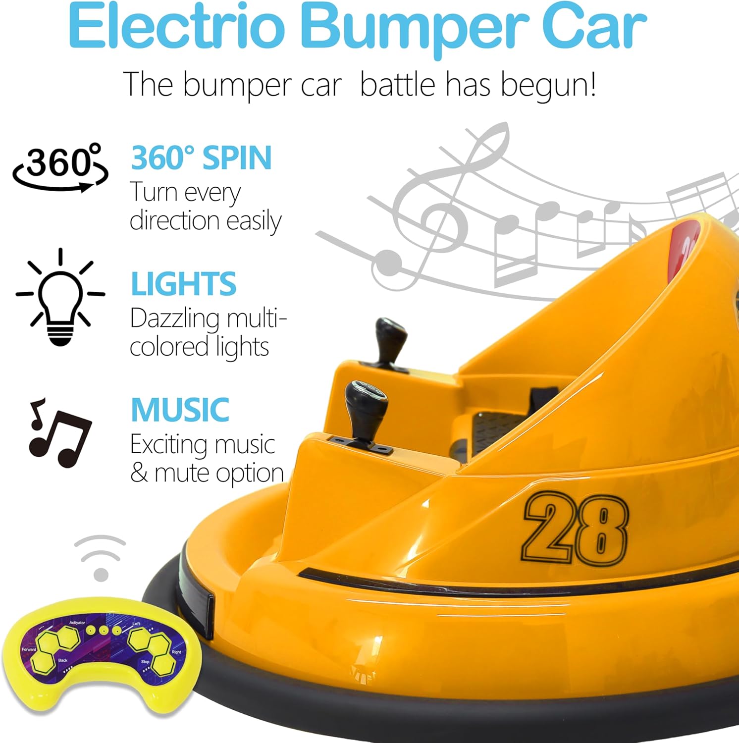 <!-- x-tinymce/html -->Turn your child’s playtime into a fun-filled adventure with the Alivio Remote Control Bumper Car, A perfect blend of excitement, safety, and innovation! Designed for young riders, this bumper car offers a 360° spin experience, bright LED lights, and cheerful music for endless entertainment. With both manual control and a 2.4GHz Bluetooth remote, parents can take charge anytime to ensure complete safety.