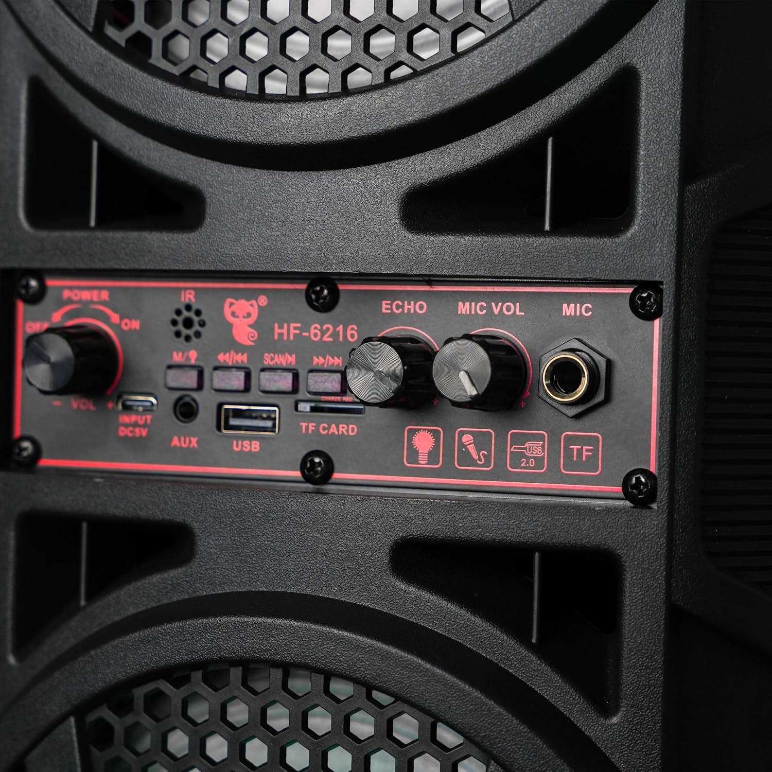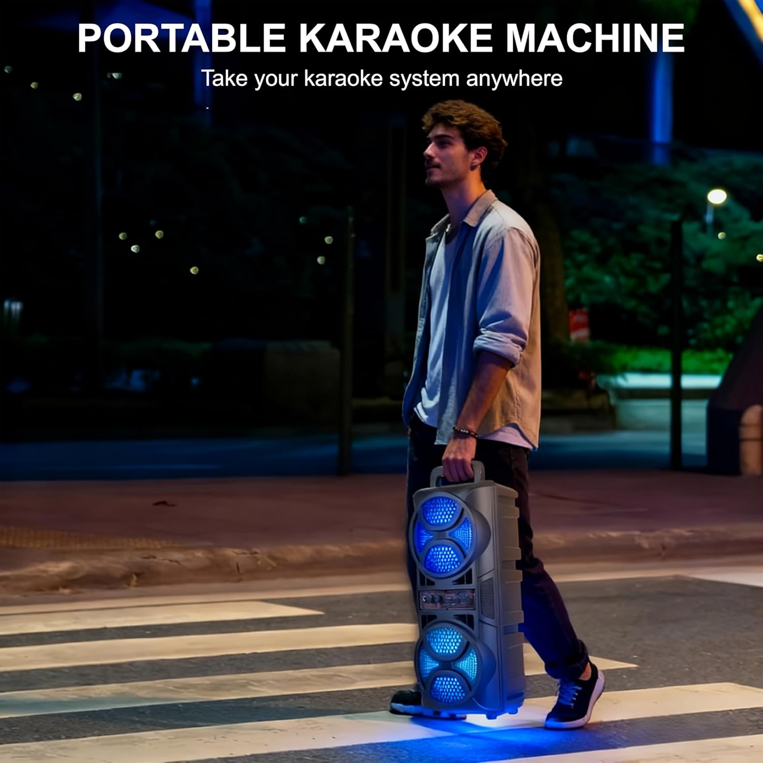 Bring the party wherever you go with this powerful portable karaoke speaker! Designed for music lovers and entertainers alike, this speaker combines deep bass, vibrant LED lights, and wireless freedom to make every gathering unforgettable. Whether you're hosting karaoke nights, outdoor parties, or family get-togethers, this speaker ensures a joyful and energetic atmosphere anywhere.