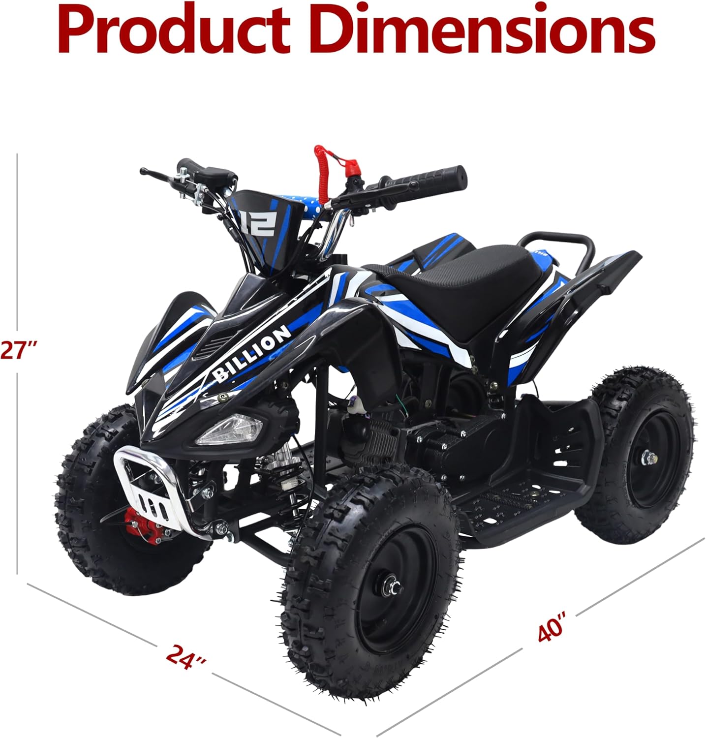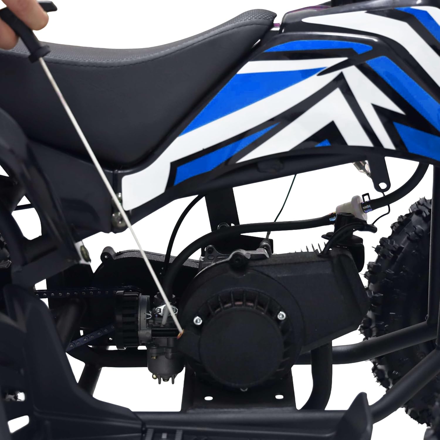Unleash your child’s adventurous spirit with the 49CC Kids Mini ATV Quad Bike — a compact yet powerful off-road beast built for fun, durability, and safety. Designed for young riders aged 6 years and above, this ATV features a 49cc 2-stroke air-cooled engine with a manual start, offering real power and performance in a kid-sized frame. Its rugged steel construction, rubber handles, and high-grip 6-inch off-road tires ensure stability and control across all terrains. Perfectly scaled down to fit younger riders, this mini ATV offers a comfortable 52cm seat height, chain drive transmission, and front & rear disc brakes for responsive stopping power. The 1.8L fuel tank and CDI ignition system provide efficient performance and easy starts every time. With a top speed of up to 50 km/h and a max load capacity of 60 kg (135 lbs), this ATV guarantees endless excitement while ensuring safety and control.
