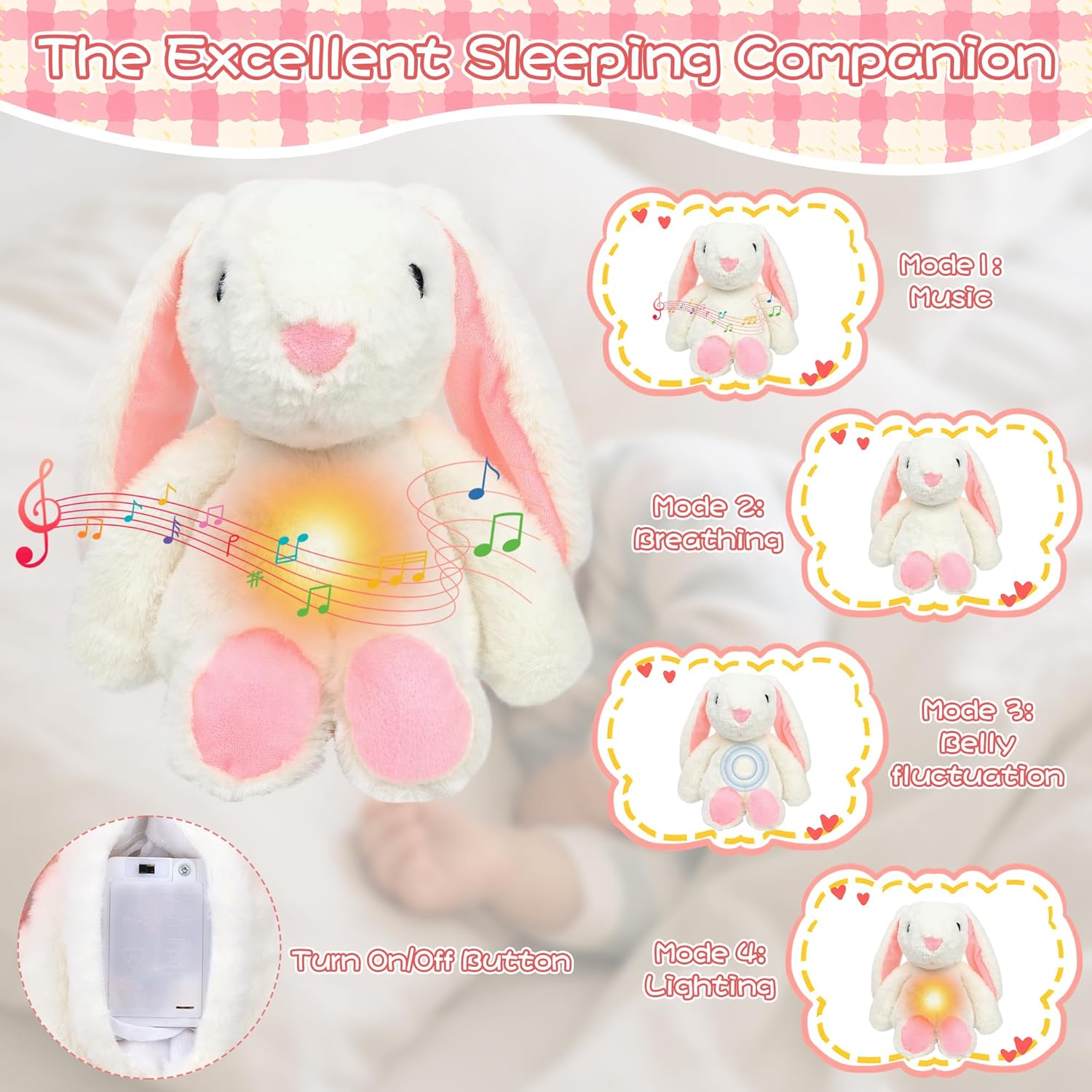 Give your little one the perfect bedtime companion with the Alivio Singing Music Bunny, designed to soothe babies with calming lights, gentle breathing motion, and soft lullaby music. This adorable plush bunny features a glowing belly, rhythmic breathing simulation, and comforting melodies that help babies relax and fall asleep faster. Made with ultra-soft, skin-friendly fabric, it’s perfect for cuddling, snuggling, and keeping your child calm through naptime and nighttime. Ideal for infants, toddlers, and kids who need extra comfort and security at bedtime.