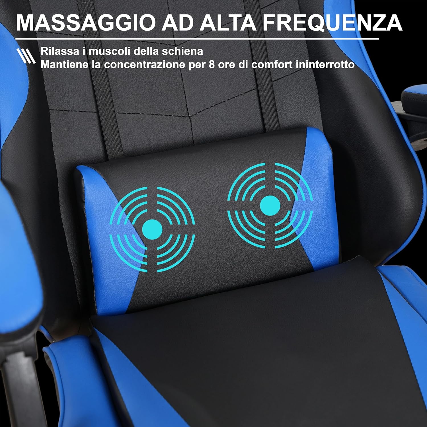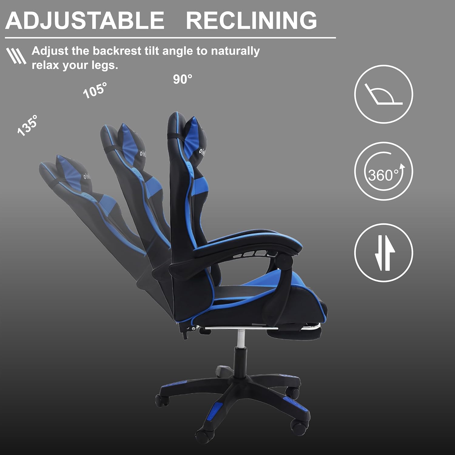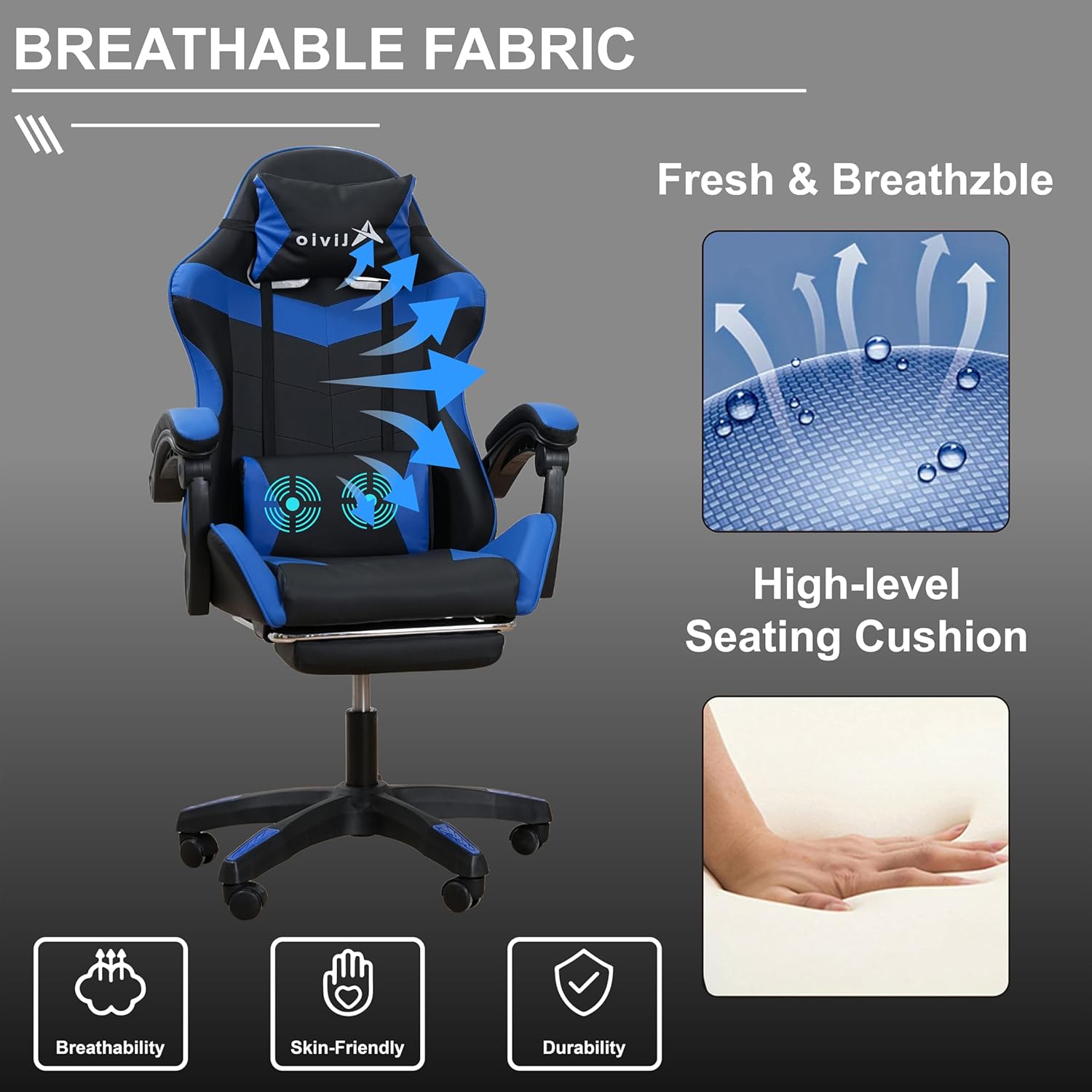 The Alivio professional gaming chair is built for serious gamers and smart-working executives who crave the adrenaline of a fully equipped gaming seat, featuring an all-metal frame, 160-degree full-tilt mechanism, retractable footrest, height-adjustable seat, and linked armrests, along with a complimentary neck pillow and USB-powered lumbar massage pillow for optimal comfort. Its thickened memory-foam padding on the seat and armrests, combined with supportive headrest and lumbar cushions, ensures exceptional comfort during long sessions. Crafted with high-density shaping foam for enhanced resilience, a sturdy 1.8mm steel frame for stability, and skin-friendly, wear-resistant PU leather, the Alivio Racing gaming chair is perfect for home, office, conference spaces, or gaming rooms and makes an ideal gift for any occasion.