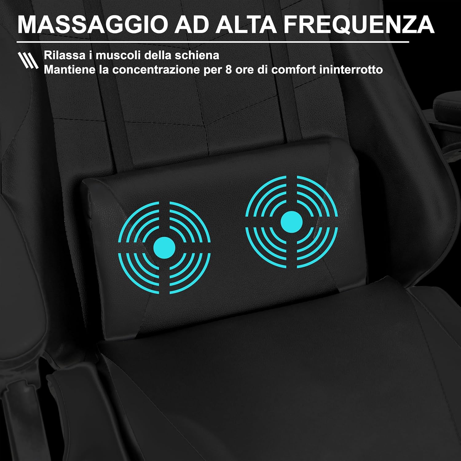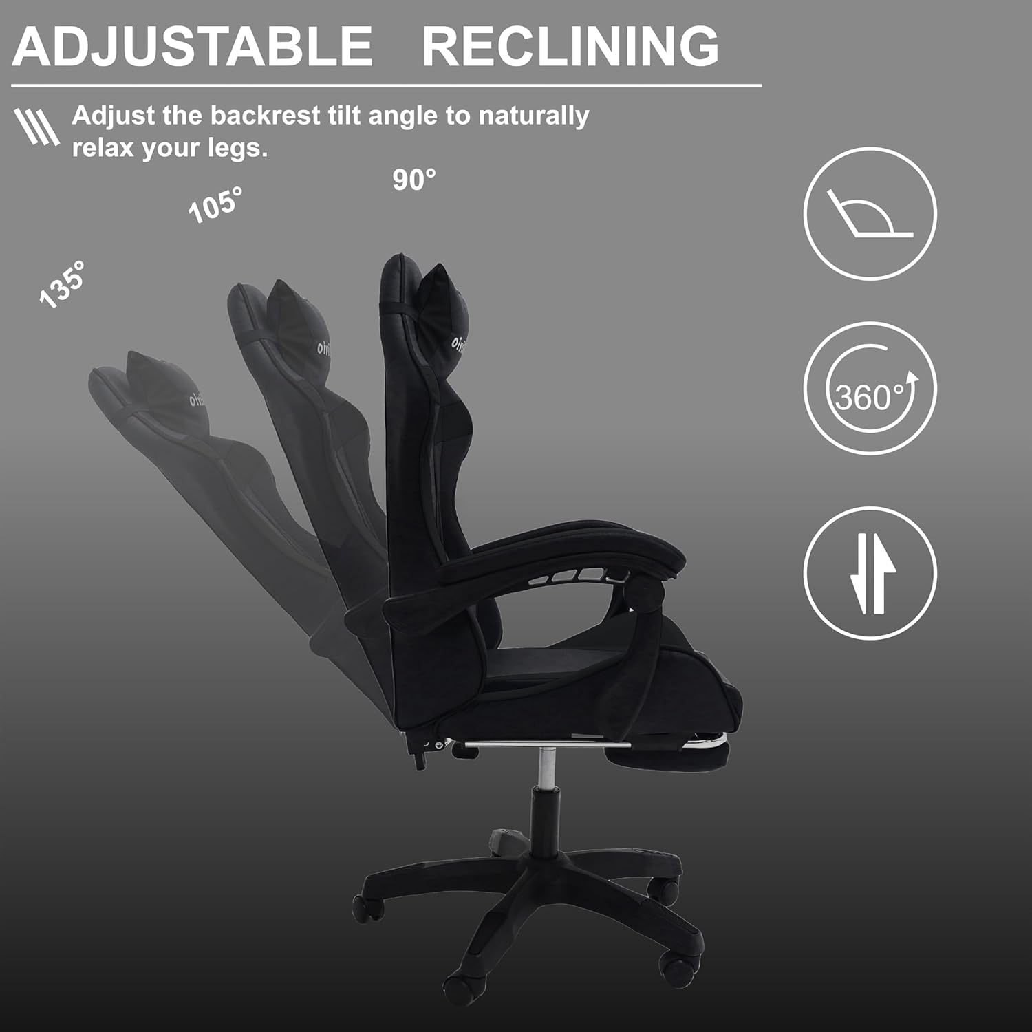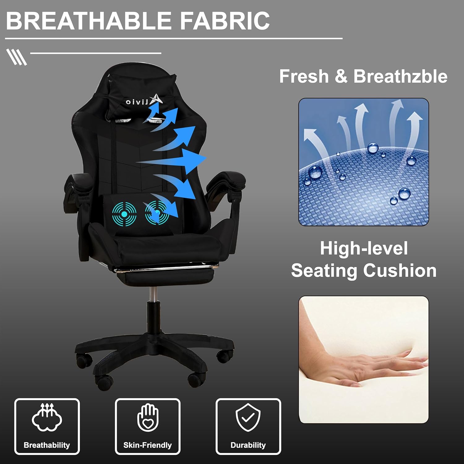The Alivio professional gaming chair is built for serious gamers and smart-working executives who crave the adrenaline of a fully equipped gaming seat, featuring an all-metal frame, 160-degree full-tilt mechanism, retractable footrest, height-adjustable seat, and linked armrests, along with a complimentary neck pillow and USB-powered lumbar massage pillow for optimal comfort. Its thickened memory-foam padding on the seat and armrests, combined with supportive headrest and lumbar cushions, ensures exceptional comfort during long sessions. Crafted with high-density shaping foam for enhanced resilience, a sturdy 1.8mm steel frame for stability, and skin-friendly, wear-resistant PU leather, the Alivio Racing gaming chair is perfect for home, office, conference spaces, or gaming rooms and makes an ideal gift for any occasion.