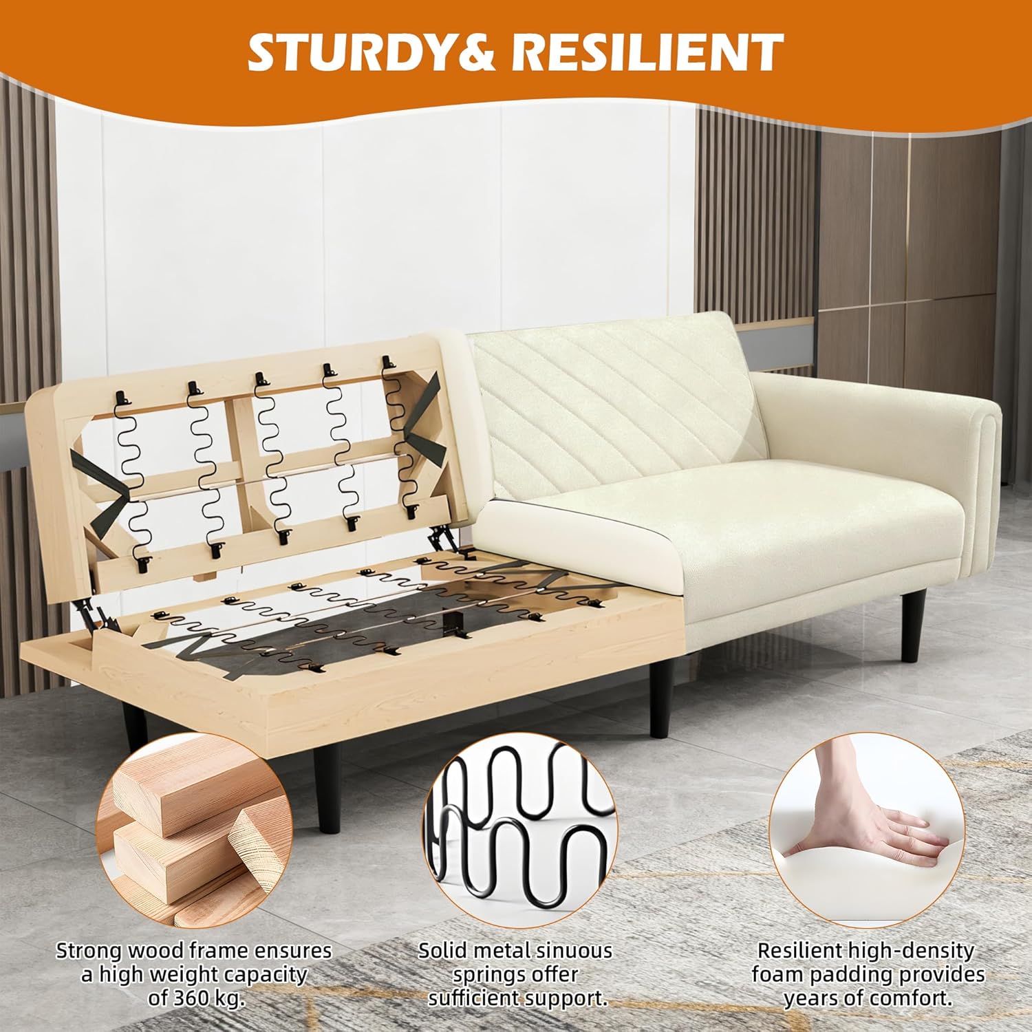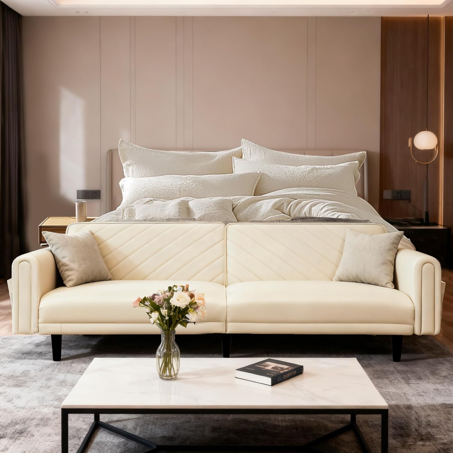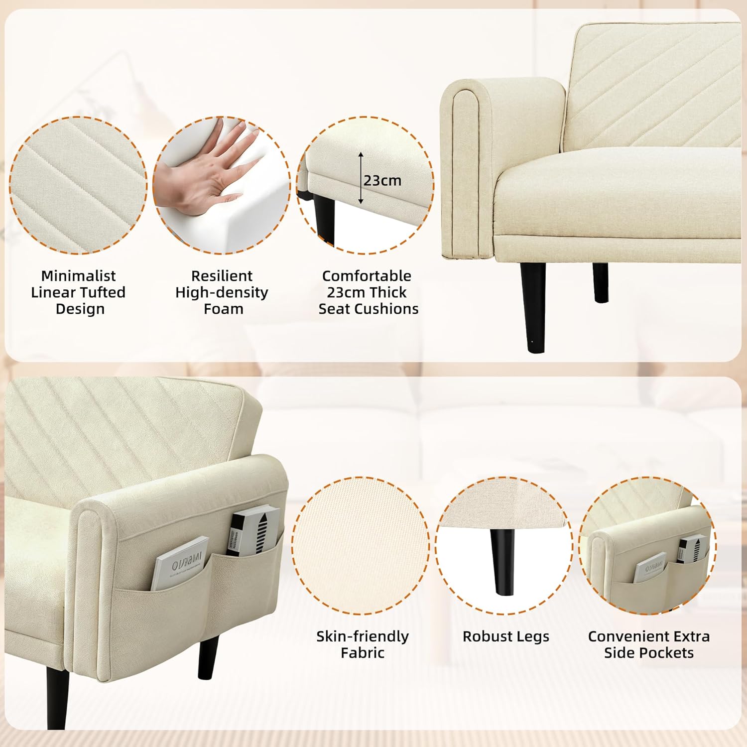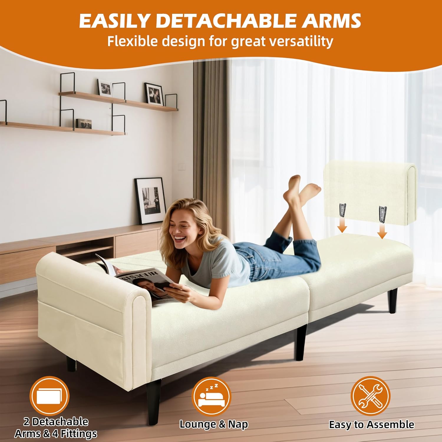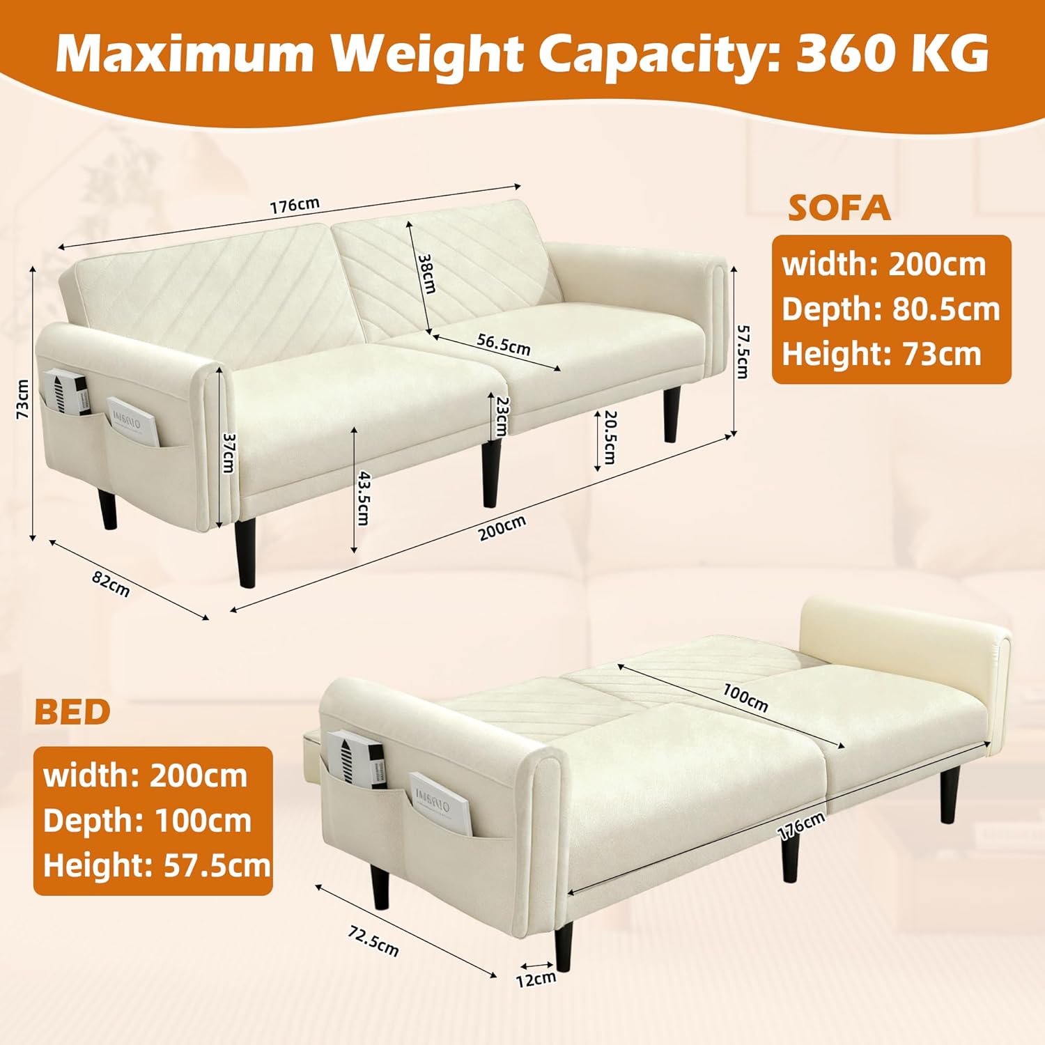 <!-- x-tinymce/html -->Experience the perfect blend of comfort, versatility, and modern design with the Alivio 2-in-1 Convertible Sofa Bed, crafted to elevate any living room, guest room, studio, or office. This multifunctional sofa offers spacious seating and quickly transforms into a cozy platform bed within seconds. Its customizable 3-position backrest, detachable arms, and 23 cm plush high-density foam cushions ensure superior comfort for lounging, sitting, napping, or hosting overnight guests. Built with a strong wood frame, solid metal sinuous springs, and robust legs, it provides reliable support with an impressive 360 kg weight capacity. Featuring a sleek minimalist linear-tufted design, smooth skin-friendly upholstery, and convenient side pockets, the Alivio Sofa Bed delivers both style and functionality. Easy to assemble, highly durable, and beautifully crafted, it brings comfort and practicality together in one elegant piece.