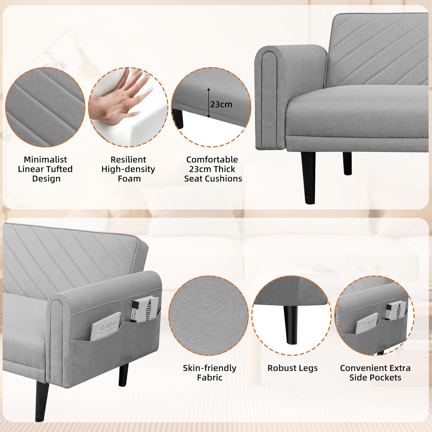 <!-- x-tinymce/html -->Experience the perfect blend of comfort, versatility, and modern design with the Alivio 2-in-1 Convertible Sofa Bed, crafted to elevate any living room, guest room, studio, or office. This multifunctional sofa offers spacious seating and quickly transforms into a cozy platform bed within seconds. Its customizable 3-position backrest, detachable arms, and 23 cm plush high-density foam cushions ensure superior comfort for lounging, sitting, napping, or hosting overnight guests. Built with a strong wood frame, solid metal sinuous springs, and robust legs, it provides reliable support with an impressive 360 kg weight capacity. Featuring a sleek minimalist linear-tufted design, smooth skin-friendly upholstery, and convenient side pockets, the Alivio Sofa Bed delivers both style and functionality. Easy to assemble, highly durable, and beautifully crafted, it brings comfort and practicality together in one elegant piece.