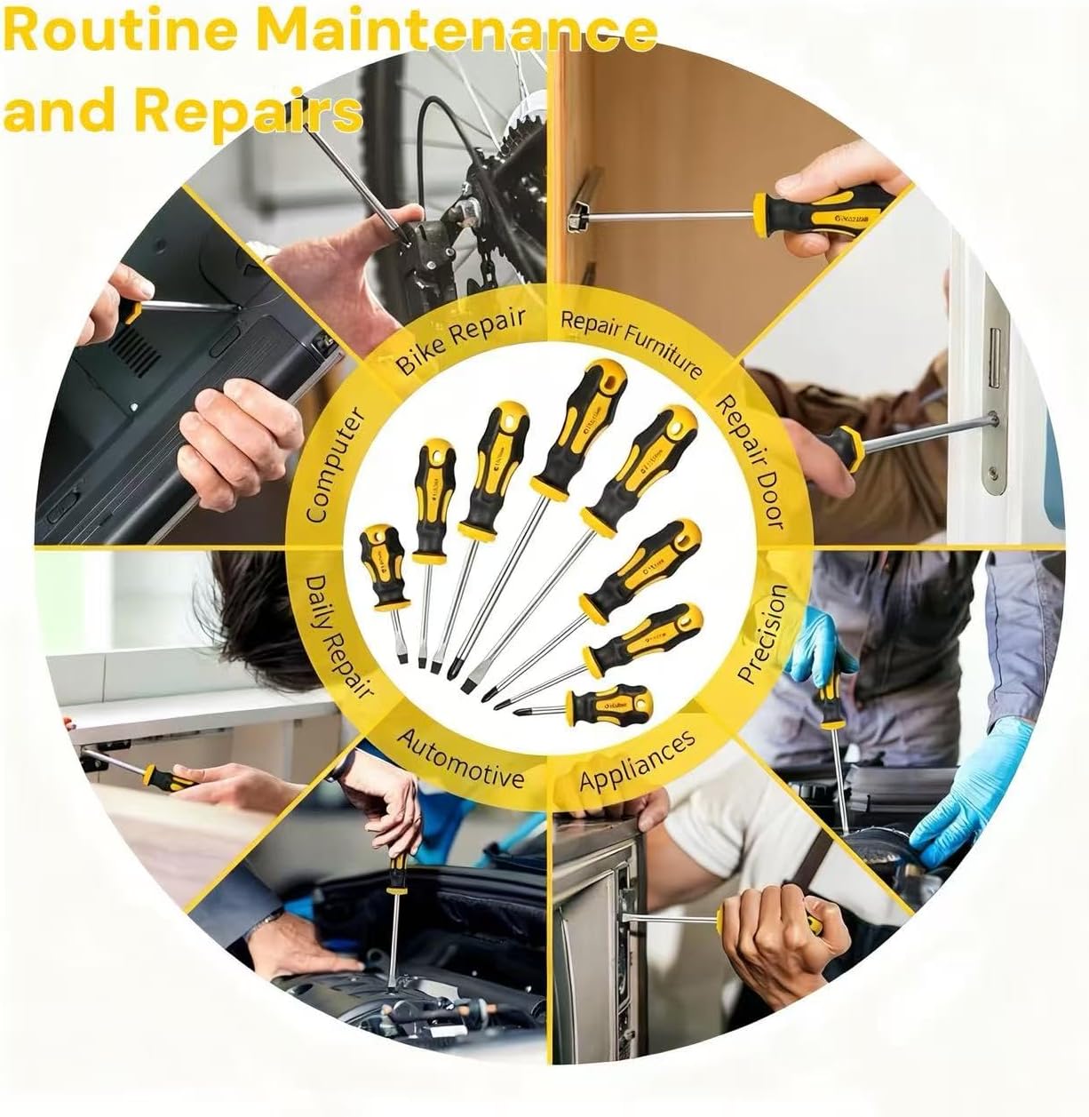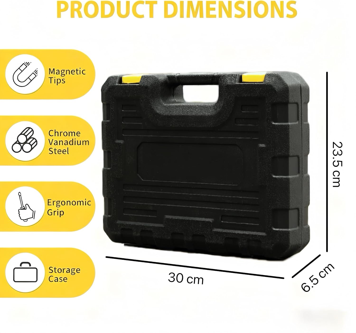 <!-- x-tinymce/html -->Upgrade your home repairs with the Alivio 43-Piece Tool Set, a complete screwdriver assortment designed for precision, comfort, and long-lasting durability. Housed in a compact 30 × 6.5 × 23.5 cm hard storage case, this toolkit is ideal for homeowners, technicians, DIY enthusiasts, and professionals. Each tool is crafted from premium chrome vanadium steel for exceptional strength and wear resistance, while the strong magnetic tips ensure secure screw grip and reduced slippage. The PP + TPR ergonomic handles provide a soft, non-slip hold to minimize fatigue during extended use. Whether you're fixing furniture, assembling electronics, or tackling general household tasks, this tool set is built to make your work easier, smoother, and more efficient.