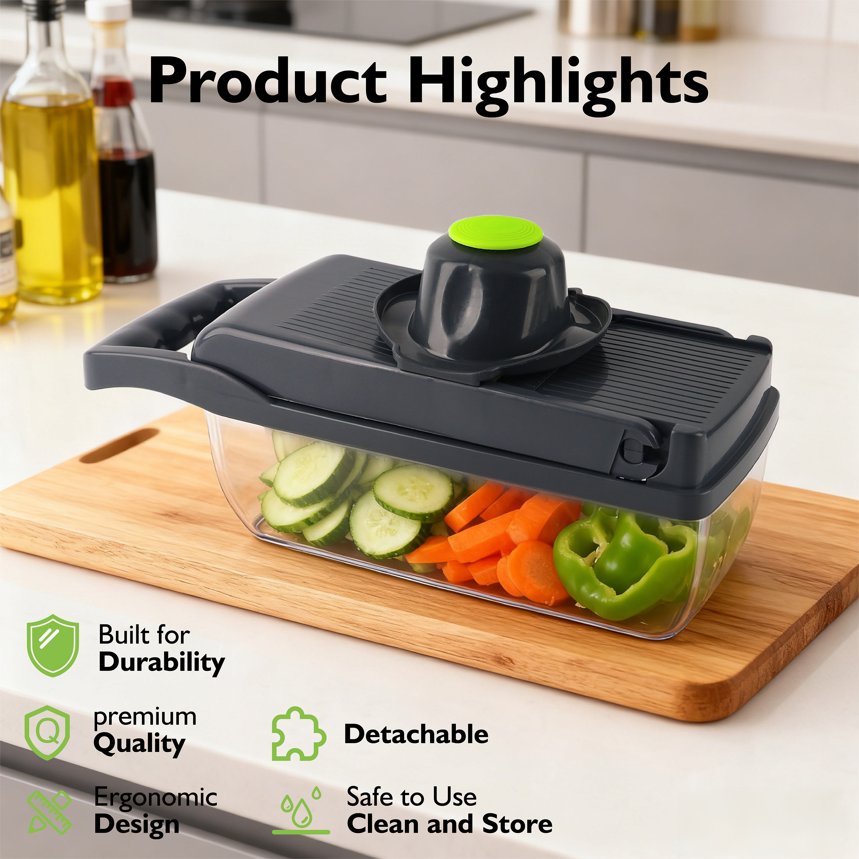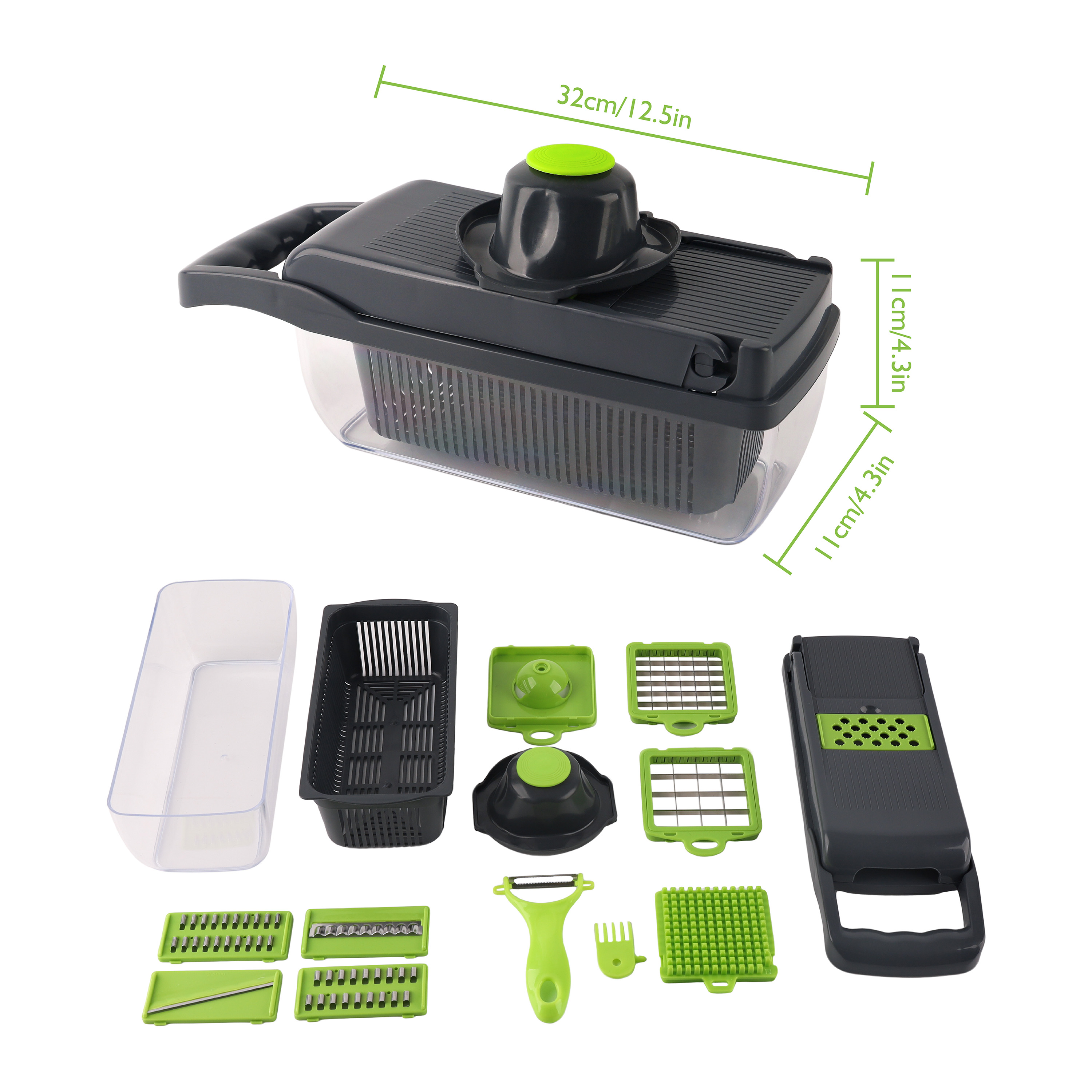 <!-- x-tinymce/html -->Upgrade your kitchen convenience with this 14-in-1 Multi-Functional Vegetable Chopper & Slicer, designed to make everyday meal prep faster, cleaner, and completely effortless. Built with sharp stainless-steel blades and a durable, ergonomic body, this chopper lets you slice, dice, grate, julienne, and chop vegetables in seconds. The integrated large-capacity container collects every cut neatly while the anti-slip base ensures stable, mess-free operation. Ideal for onions, tomatoes, potatoes, cucumbers, cheese, fruits, and more—this all-in-one chopper is a must-have tool for quick salads, meal prep, garnishing, and smart cooking. Perfect for home kitchens, gifting, and daily use.