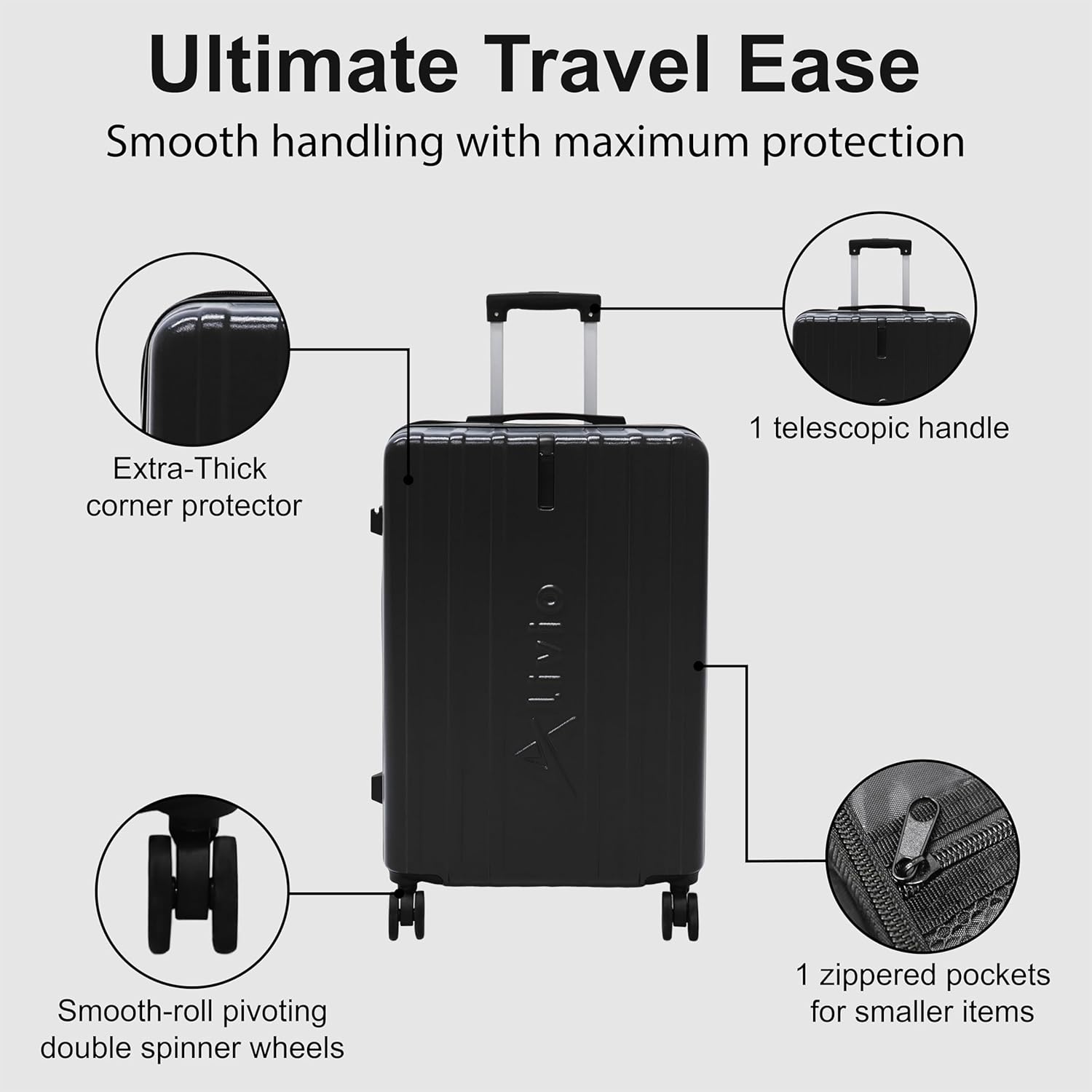 <!-- x-tinymce/html -->Travel with confidence using the Alivio Hard Shell Suitcase, built with a strong PC+ABS exterior that’s lightweight, shock-resistant and ready for everyday travel. The expandable storage offers extra packing space when needed, while the smooth 360° double spinner wheels ensure effortless movement through airports, stations and hotels. Designed for durability and convenience, this high-capacity trolley suitcase features secure zippers, a comfortable telescopic handle and an organised interior for stress-free packing. A perfect choice for holidays, business trips and weekend getaways.
