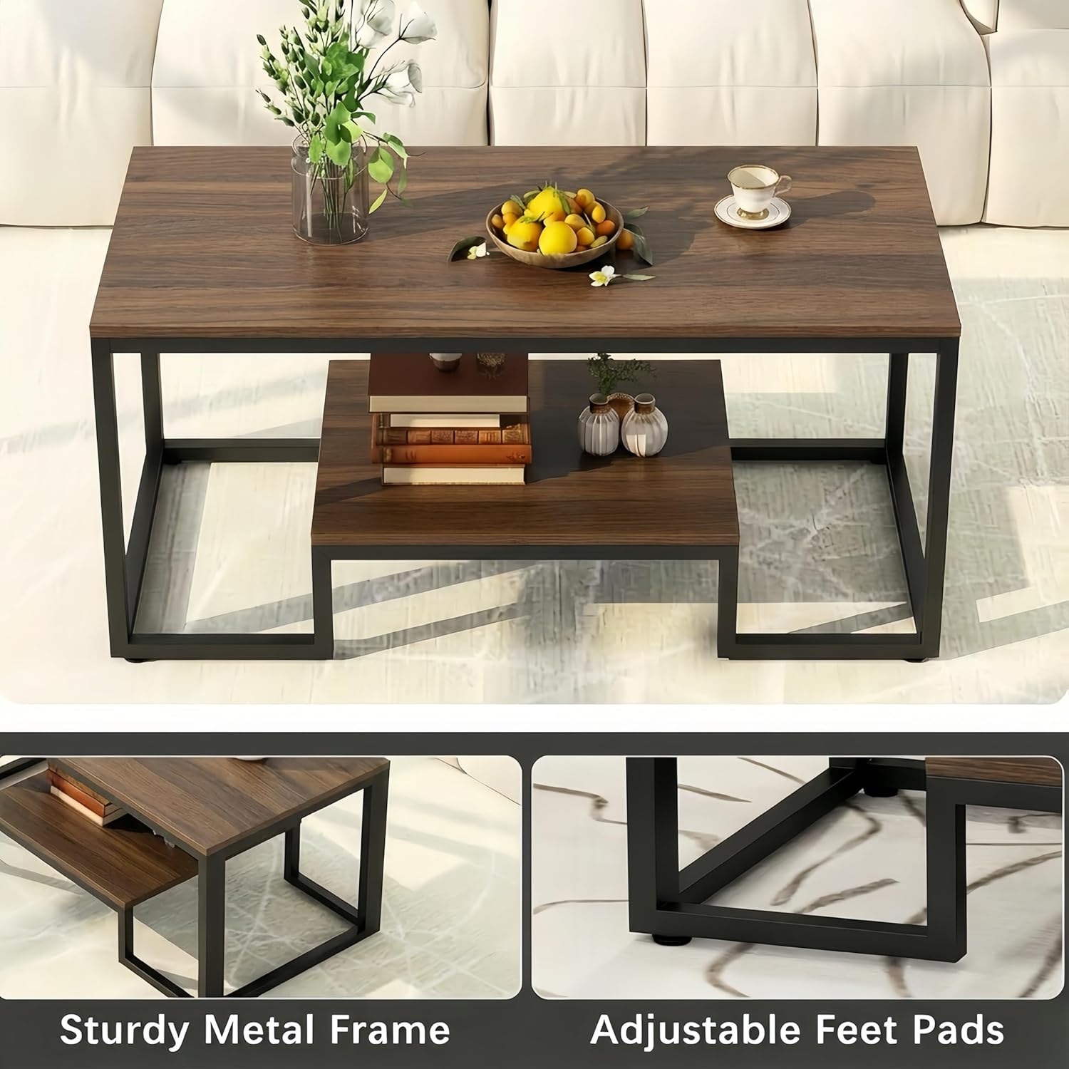 <!-- x-tinymce/html -->Upgrade your living room decor with the Alivio 2-Tier Coffee Table, designed with a modern metal frame, smooth wooden tabletop and an extra lower shelf for practical everyday storage. This compact centre table fits perfectly in small or large spaces, offering space for books, decor, snacks, magazines and remote controls. Its sturdy construction makes it ideal for the living room, hallway, home office or lounge, while the sleek minimalist look blends effortlessly with modern, classic and contemporary interiors. Stylish, durable and functional a perfect furniture upgrade for any home.