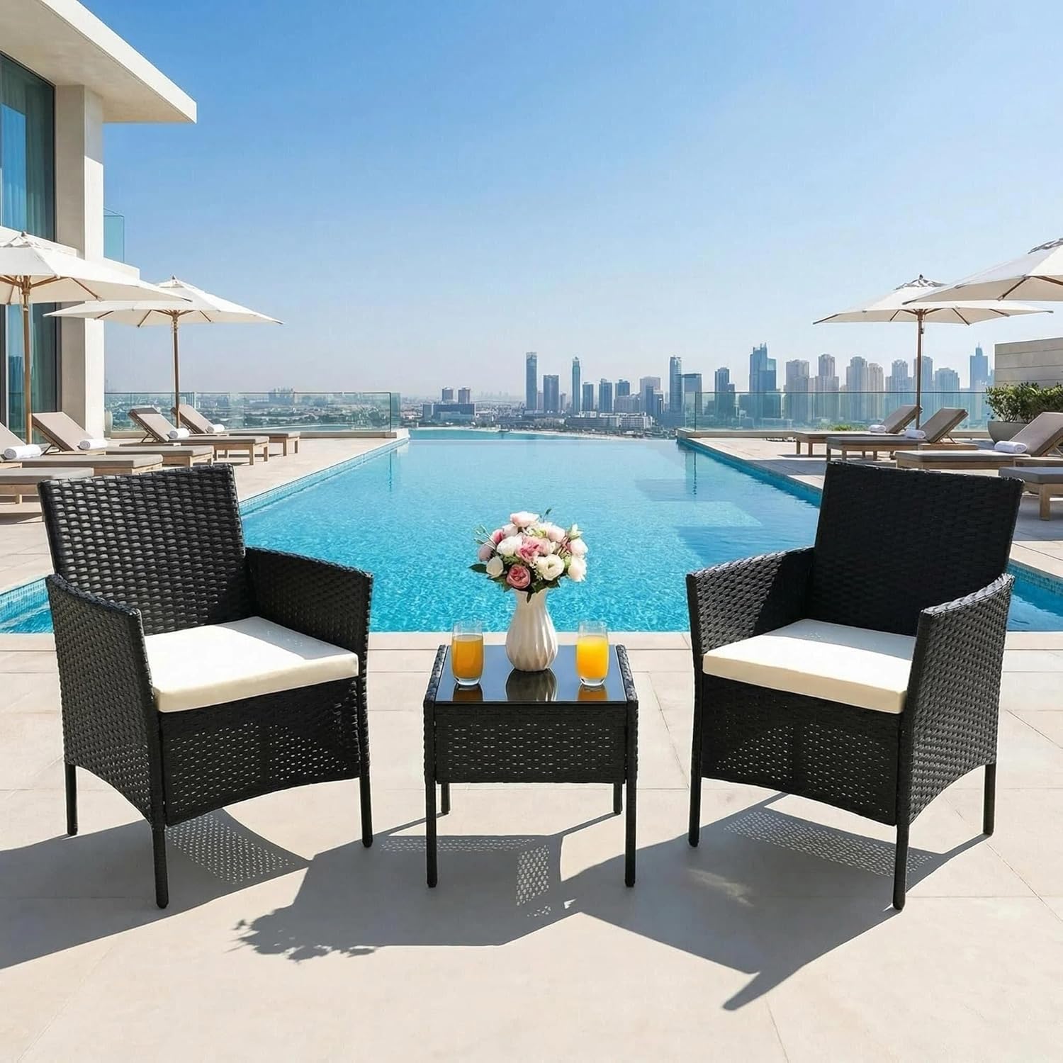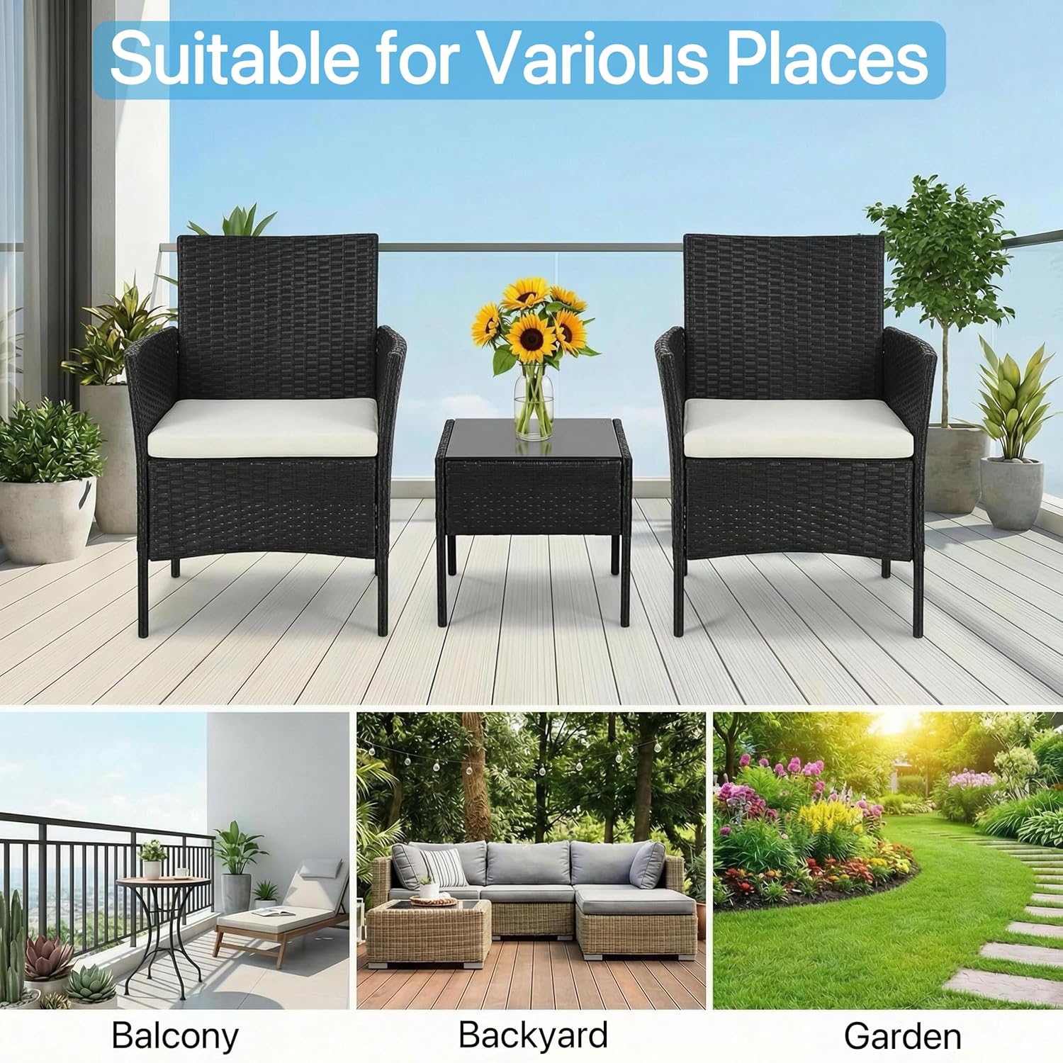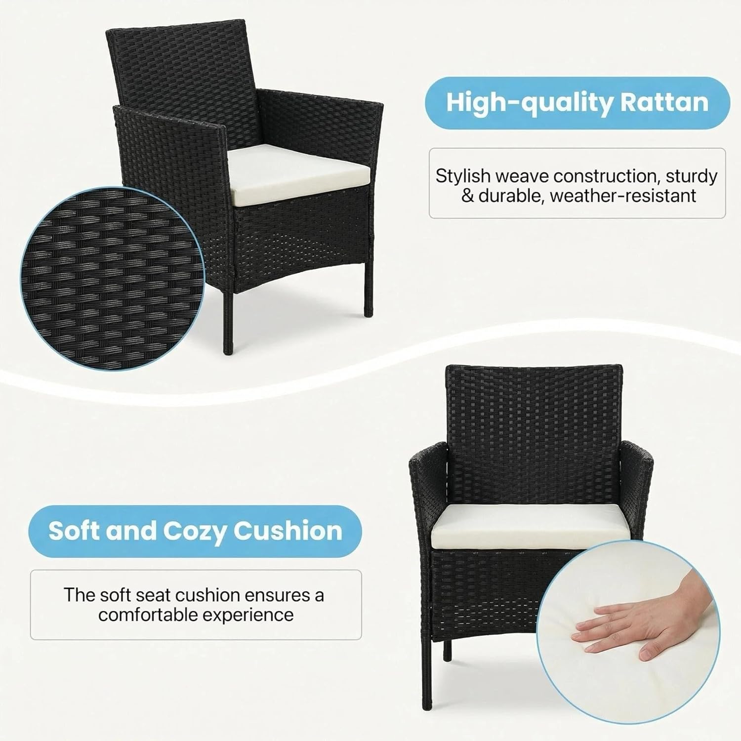 Upgrade your indoor or outdoor space with this stylish and functional 3-piece wicker furniture set, designed to bring comfort and elegance to your home. Featuring two ergonomically designed armchairs and a matching coffee table, this set is perfect for relaxing, entertaining guests, or enjoying your morning tea. Crafted with durable, weather-resistant rattan weave and a sturdy frame, this furniture set ensures long-lasting performance while maintaining its modern aesthetic. The soft, cushioned seats provide superior comfort, making it ideal for patios, balconies, gardens, or even indoor living areas. Whether you're creating a cozy corner or enhancing your outdoor decor, this versatile furniture set is the perfect combination of style, durability, and comfort.