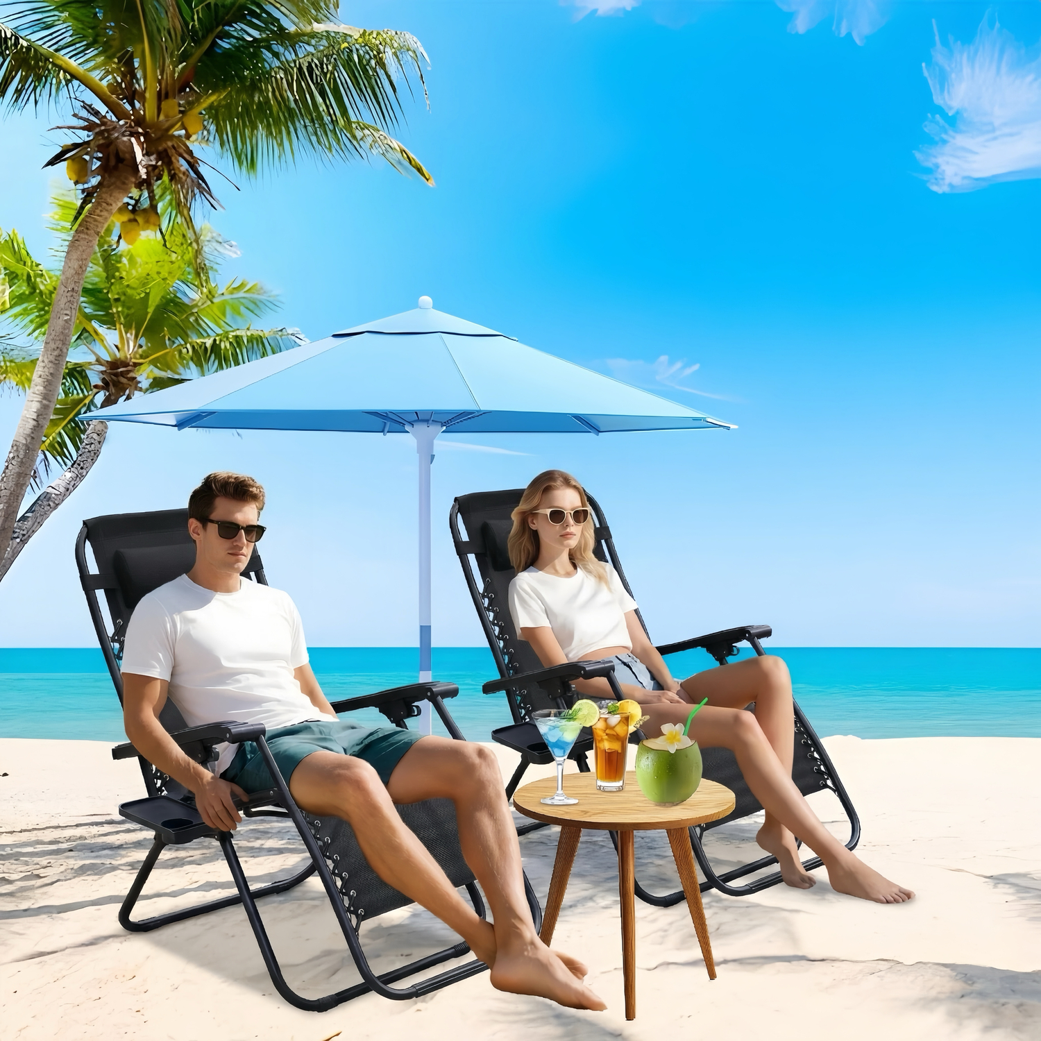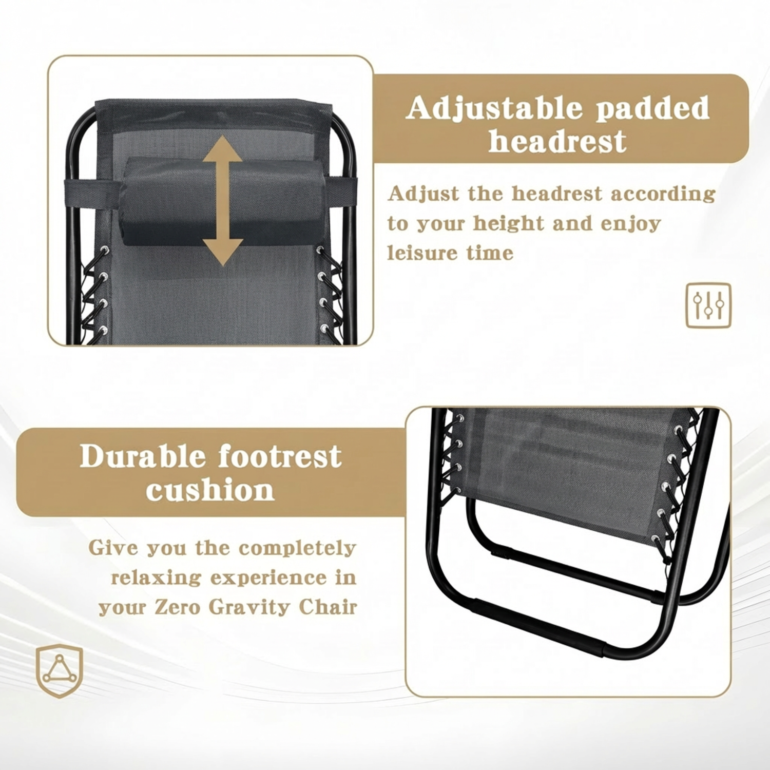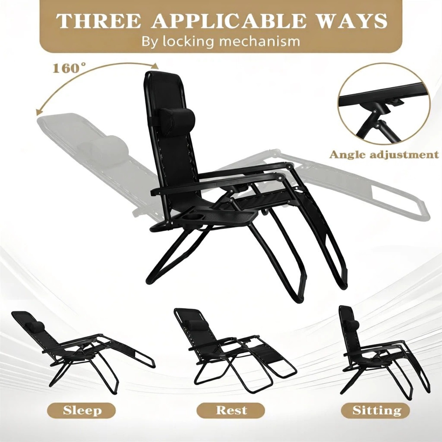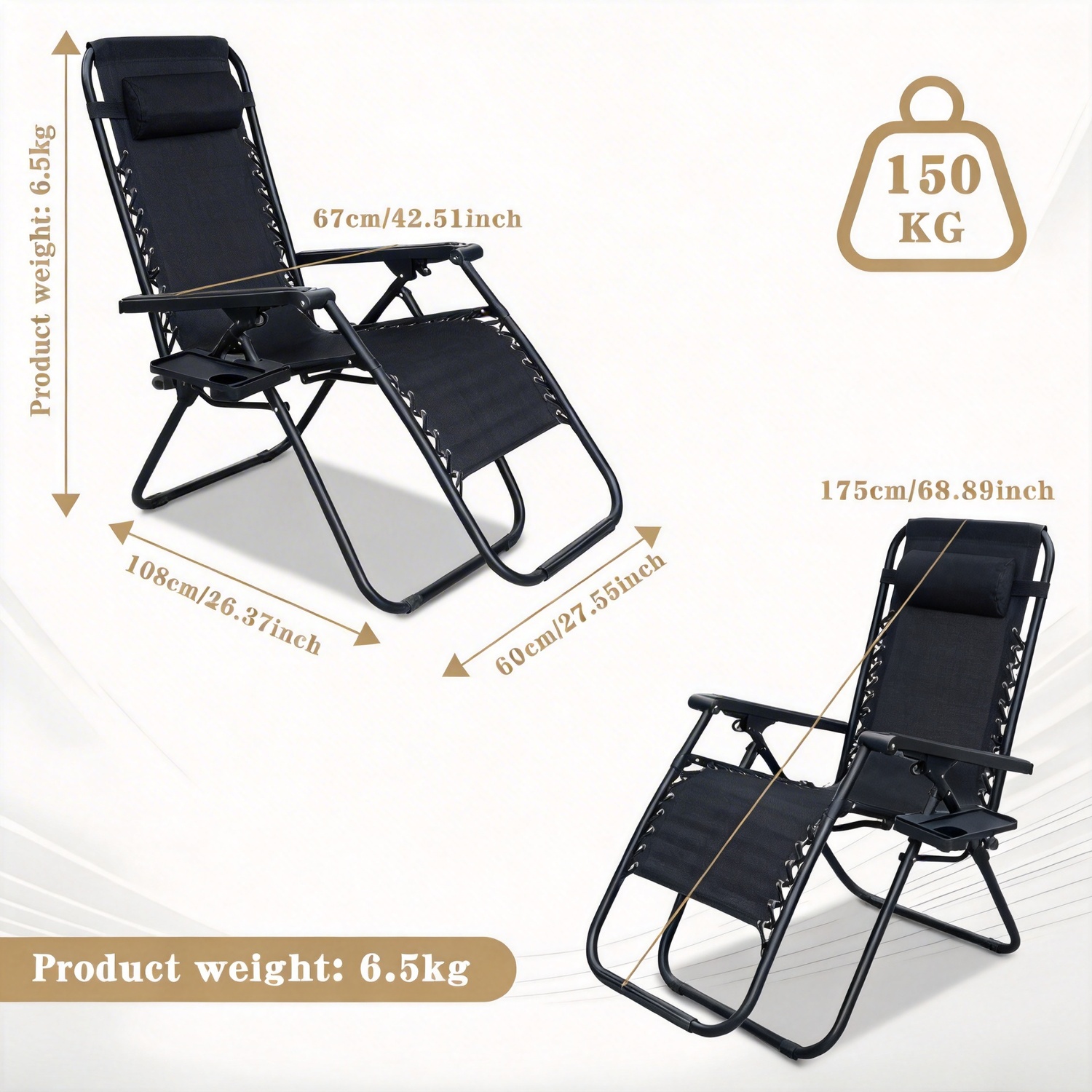 Our super relaxing zero gravity lounger makes you feel like you're floating. It elevates the feet and legs, while gently supporting the back, so you get the sensation of weightlessness. They are comfortable to sit on, enabling you to enjoy the weather for longer. It includes cup holders for convenience and a headrest pillow for added comfort. Made from durable fabric, has freely lockable controller. It is stain resistant and weather resistant chair.