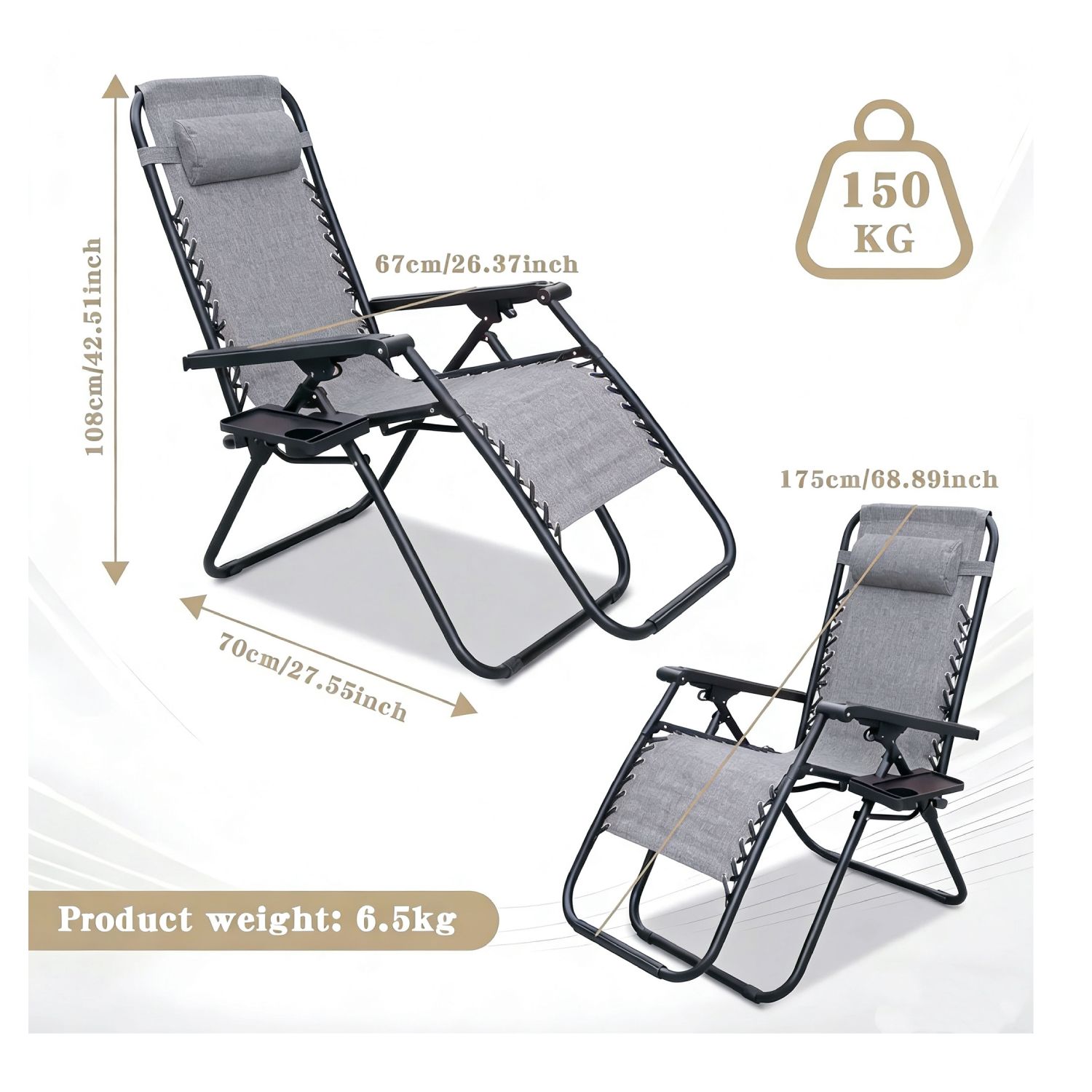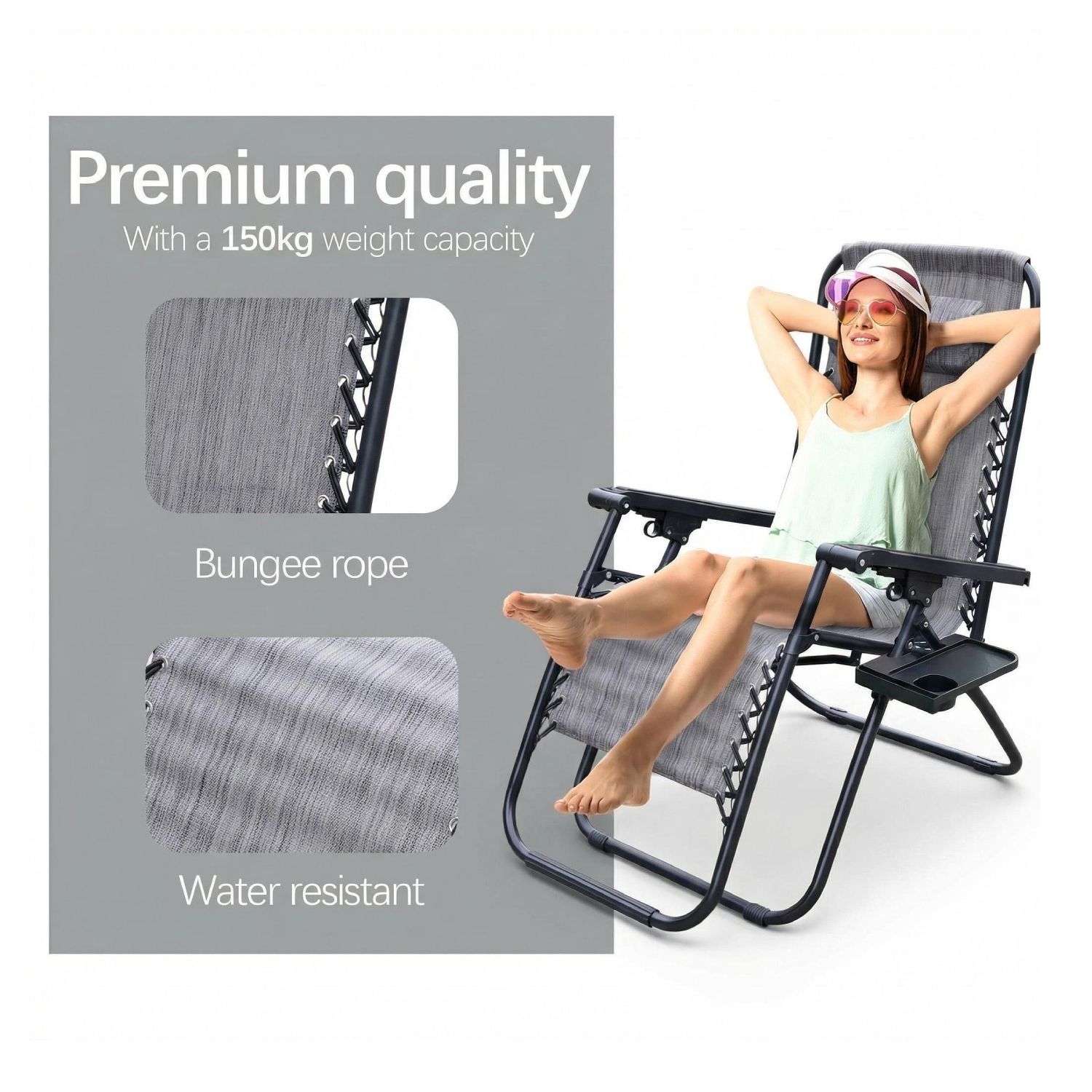 Our super relaxing zero gravity lounger makes you feel like you're floating. It elevates the feet and legs, while gently supporting the back, so you get the sensation of weightlessness. They are comfortable to sit on, enabling you to enjoy the weather for longer. It includes cup holders for convenience and a headrest pillow for added comfort. Made from durable fabric, has freely lockable controller. It is stain resistant and weather resistant chair.