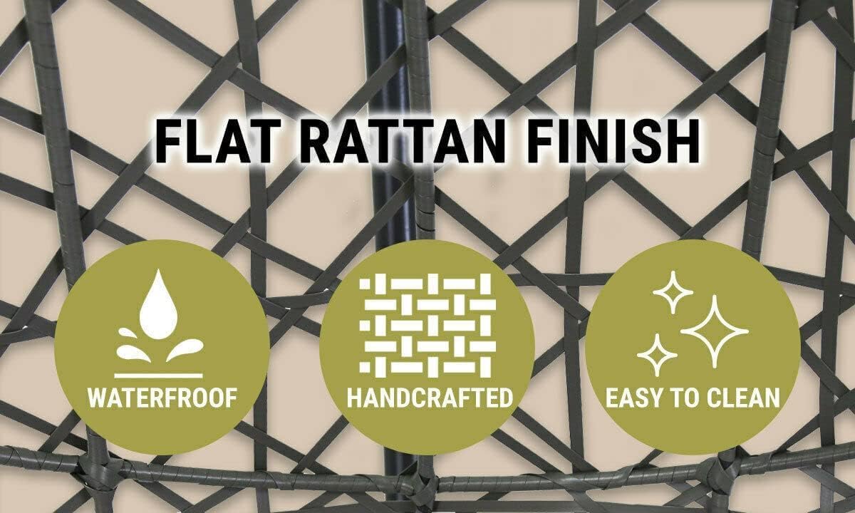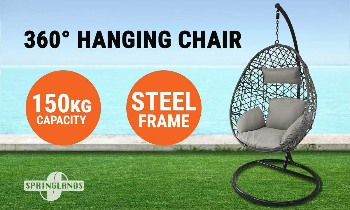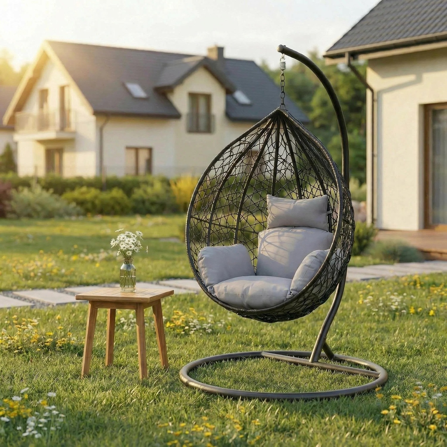 Escape to your outdoor space with our rattan swing chair. Our all-weather swing chair is hand-weaved using high-quality weatherproof polyrattan, perfect for relaxing on balconies or patios. Comes complete with luxury waterproof deep-filled cushions in a choice of colors. Suitable for indoor or outdoor use, the steel frame makes this swing chair strong and sturdy, and it's spring-hung for maximum comfort. Fully painted and treated for outdoor use, making it rustproof and very easy to assemble. Stylish and gorgeous rattan swing chair from Alivio with a thick, relaxing cushion that fits the chair properly. Comes complete with luxury, waterproof, deep-filled cushions. Easy to clean and maintain by means of the hose or washcloth. It comes with a soft cushion to ensure high comfort and maintain the stability of the chair. The steel frame makes this swing chair strong and sturdy, and it's spring-hung for maximum comfort. Fully painted and treated for outdoor use, making it rustproof and very easily assembled. Waterproof, handcrafted, and easy to clean.