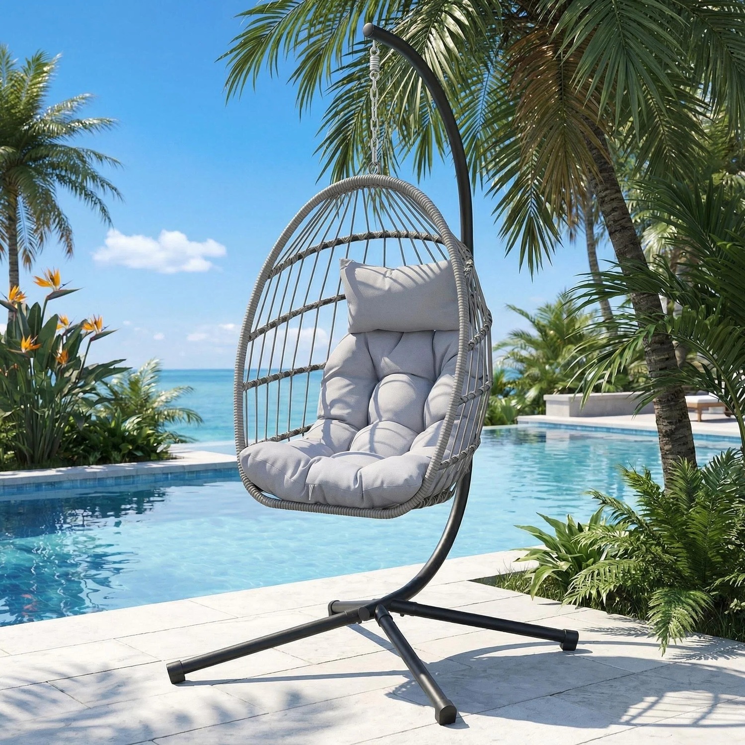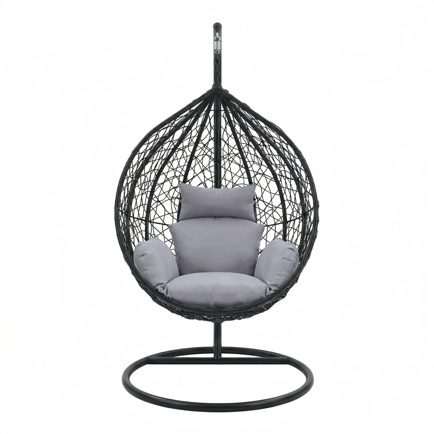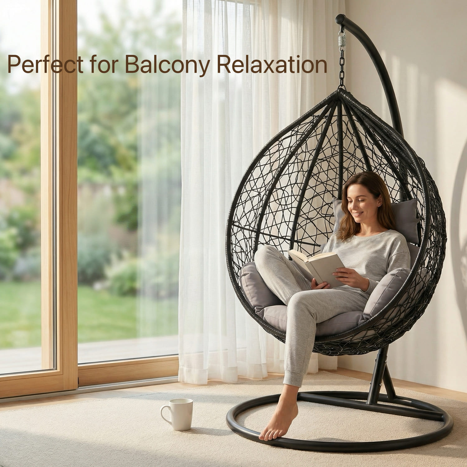 Escape to your outdoor space with our rattan swing chair. Our all-weather swing chair is hand-weaved using high-quality weatherproof polyrattan, perfect for relaxing on balconies or patios. Comes complete with luxury waterproof deep-filled cushions in a choice of colors. Suitable for indoor or outdoor use, the steel frame makes this swing chair strong and sturdy, and it's spring-hung for maximum comfort. Fully painted and treated for outdoor use, making it rustproof and very easy to assemble. Stylish and gorgeous rattan swing chair from Alivio with a thick, relaxing cushion that fits the chair properly. Comes complete with luxury, waterproof, deep-filled cushions. Easy to clean and maintain by means of the hose or washcloth. It comes with a soft cushion to ensure high comfort and maintain the stability of the chair. The steel frame makes this swing chair strong and sturdy, and it's spring-hung for maximum comfort. Fully painted and treated for outdoor use, making it rustproof and very easily assembled. Waterproof, handcrafted, and easy to clean.