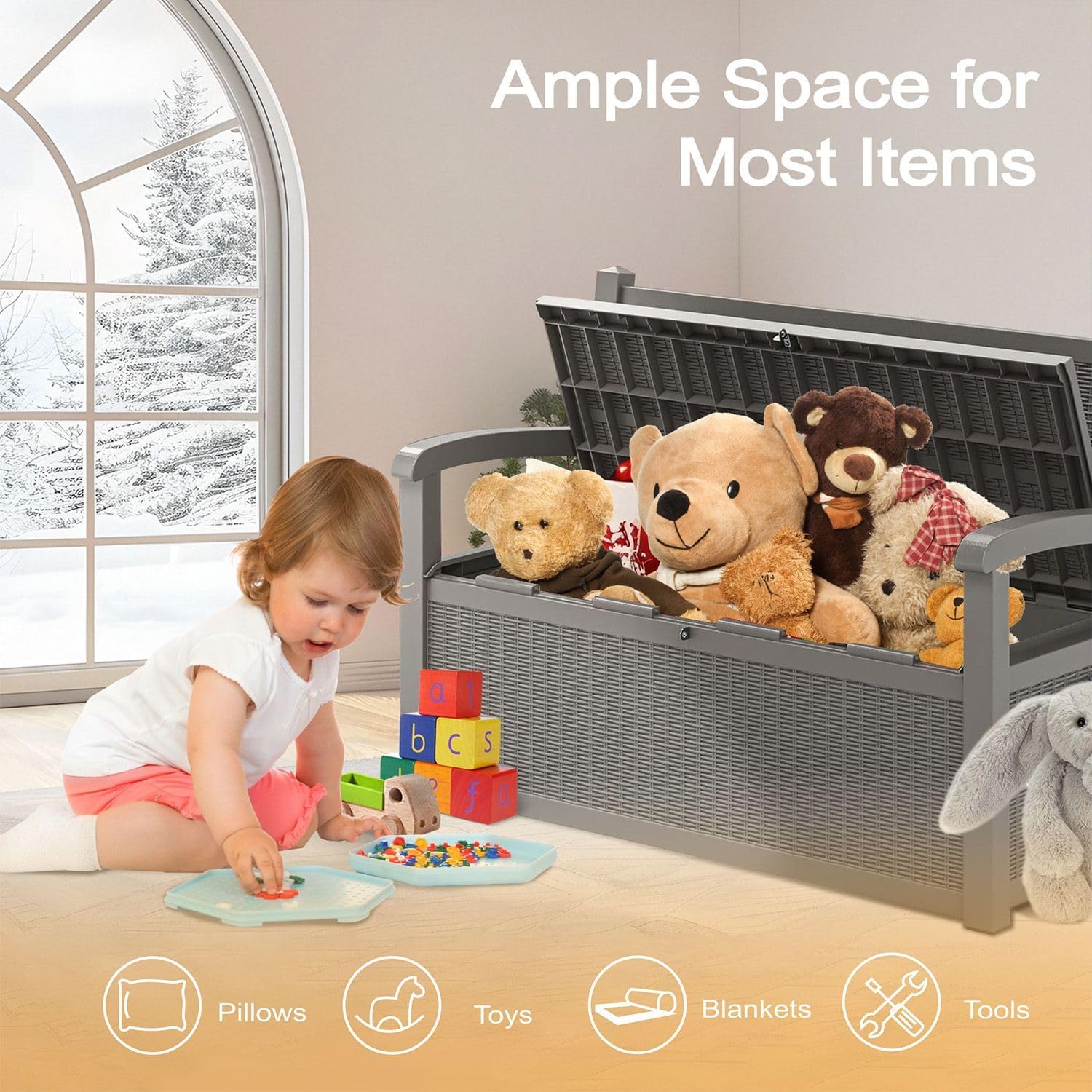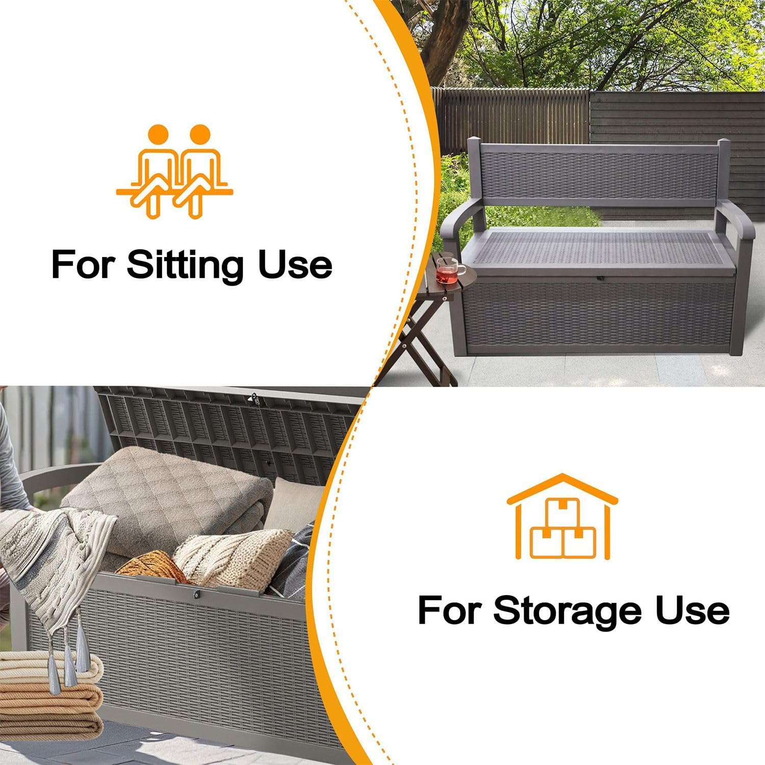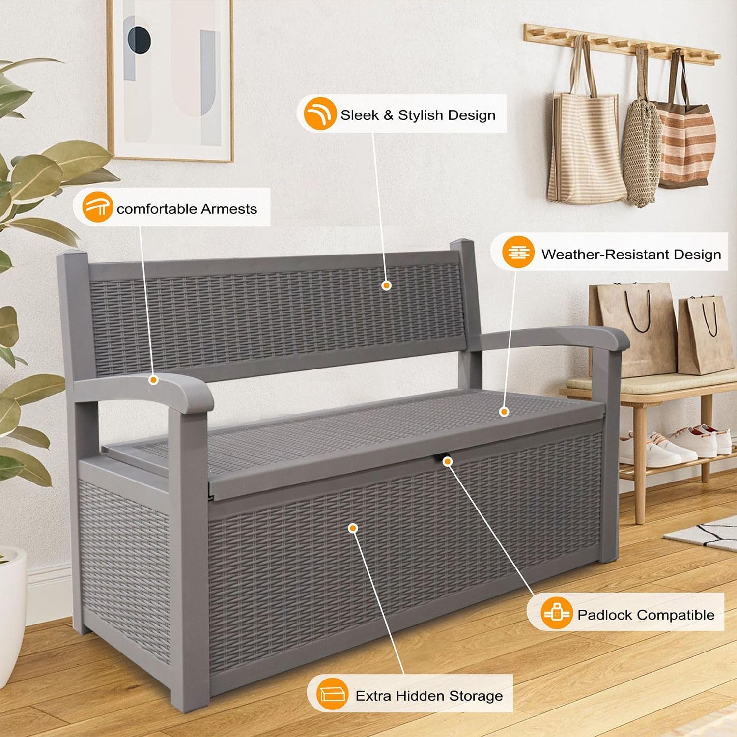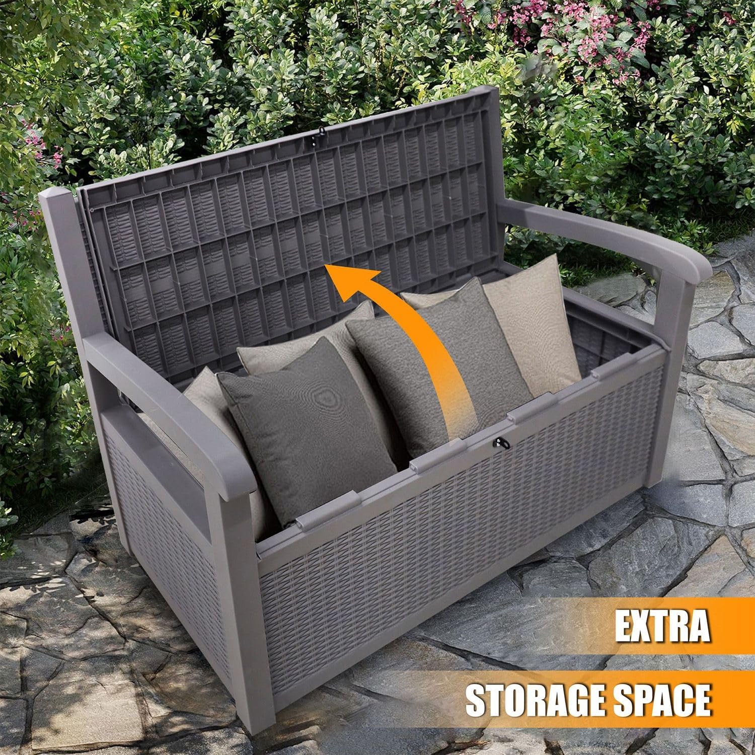 Upgrade your outdoor space with the Alivio Outdoor Storage Bench—a perfect fusion of style, comfort, and practicality. Featuring a generous 265L capacity, this sleek grey bench offers ample hidden storage for cushions, garden tools, toys, and more, while doubling as a sturdy seating option with a comfort-focused design and supportive armrests. Its contemporary silhouette complements any garden, patio, or balcony, and the durable, weather-resistant plastic construction with UV protection ensures it stands up to sun, rain, and everyday use without fading or cracking. Padlock compatibility adds an extra layer of security, and assembly is quick and tool-free, making it a smart and stylish solution for outdoor living.